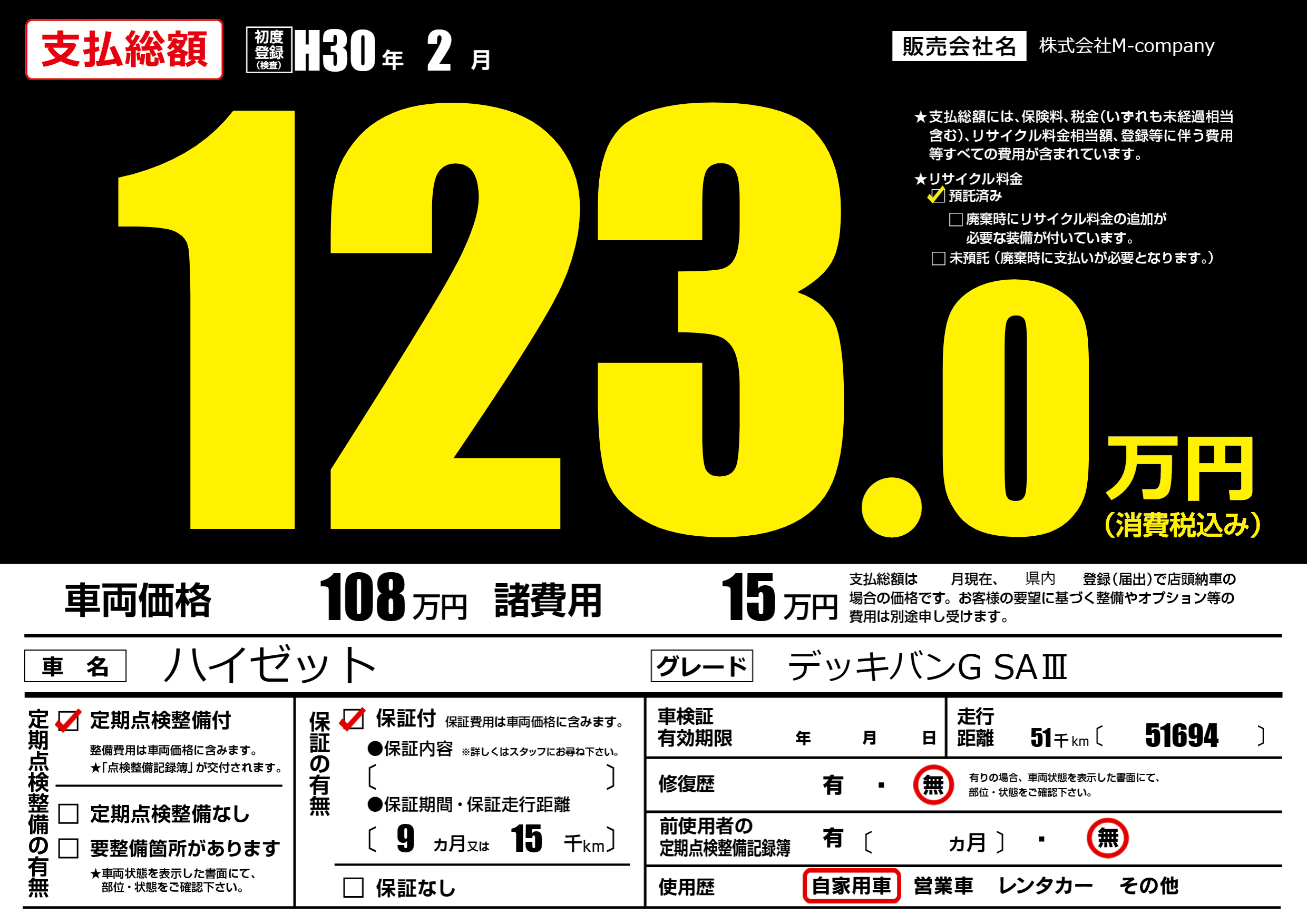 | 走行キロ | 5.1万km | 初年度登録 | H30年2月 |