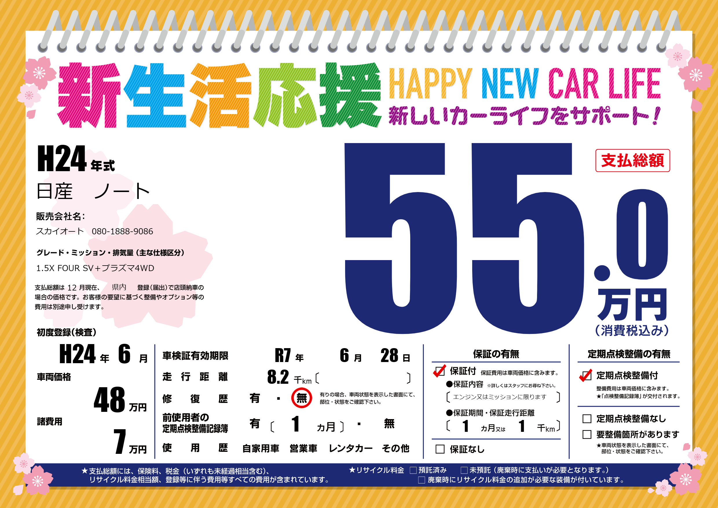 | 車名 | 日産 ノート | グレード ミッション 排気量 |