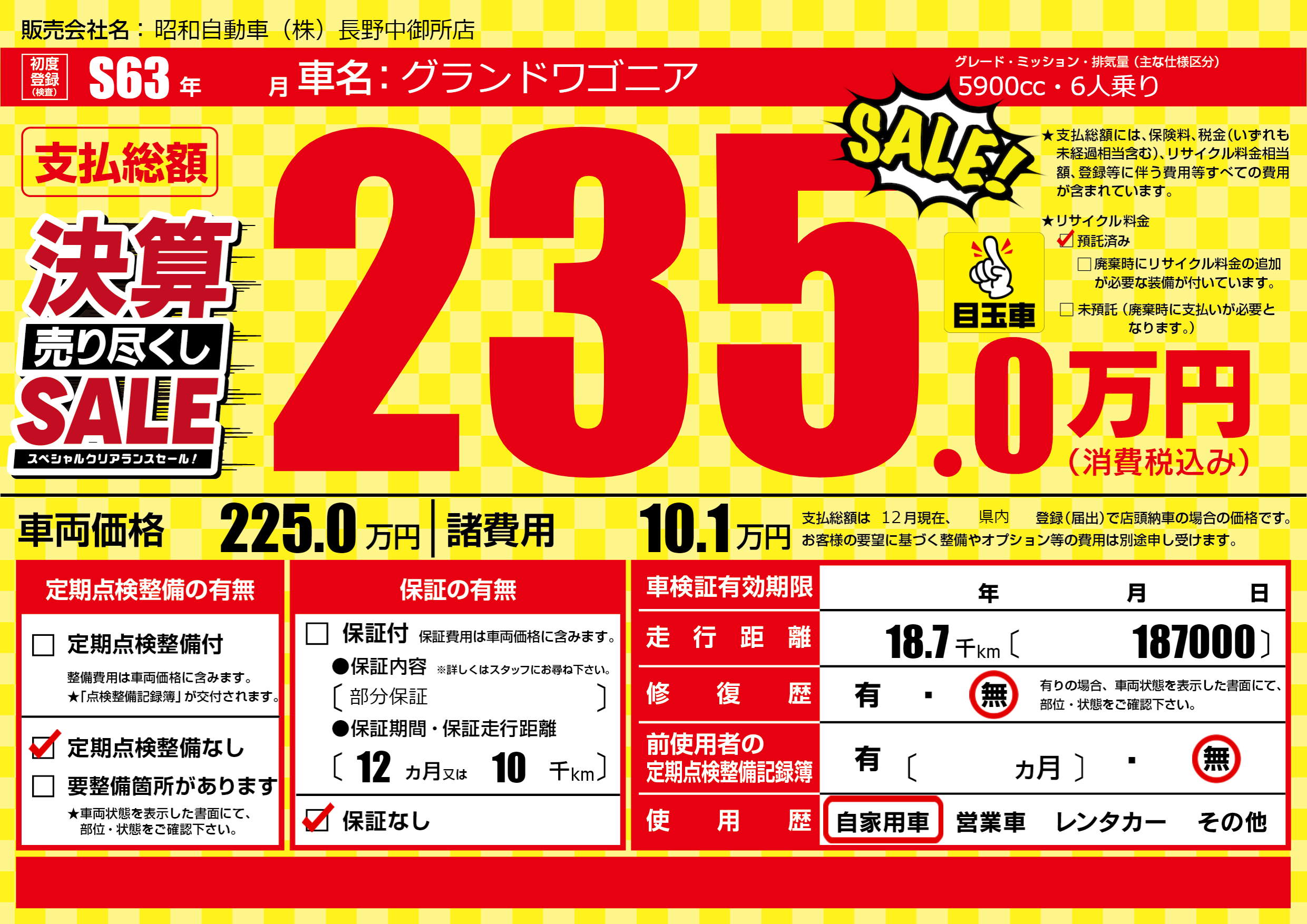 | 車名 | グランドワゴニア | グレード ミッション 排気量 |