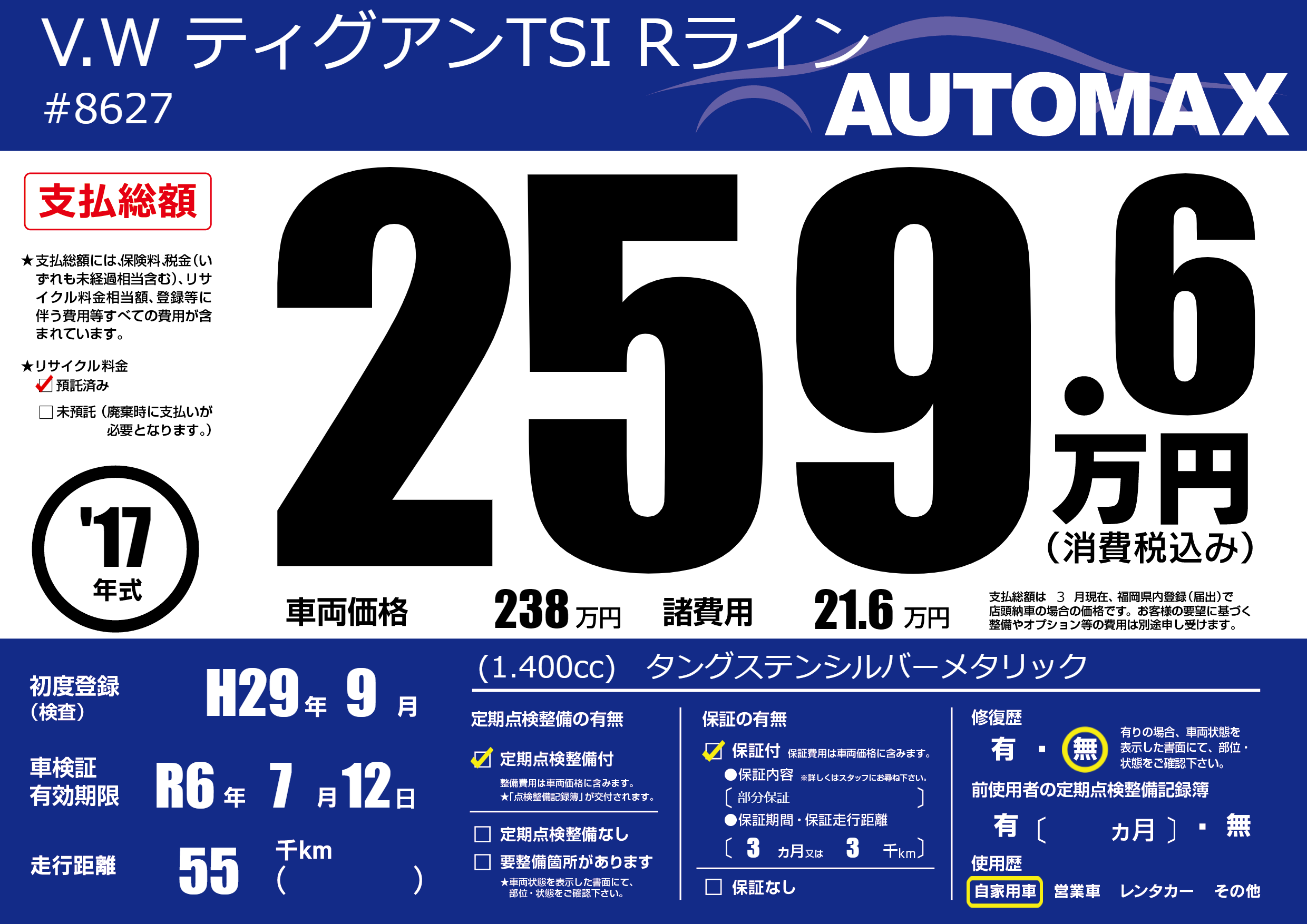 | 車検制限 | R6年 7月 12日 | ||