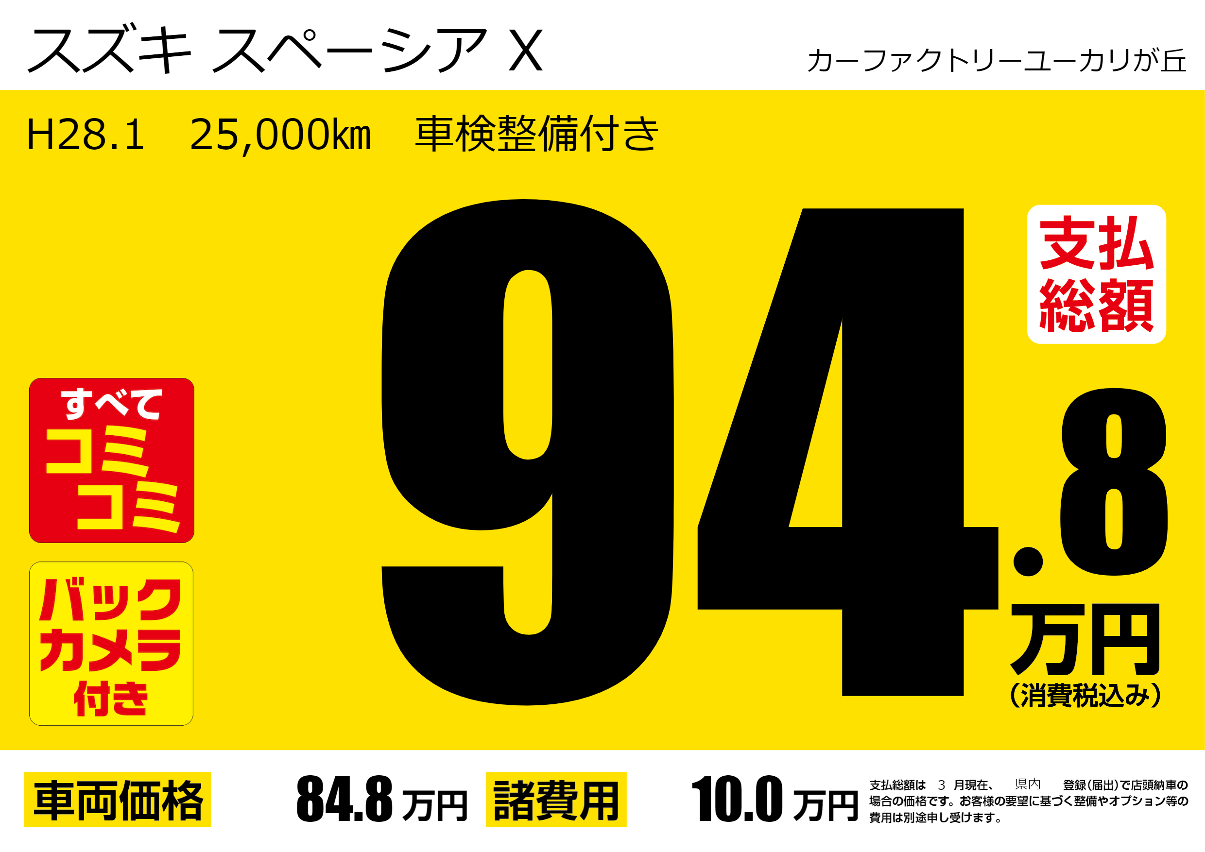 | 車名 | スズキ スペーシア X | グレード ミッション 排気量 |
