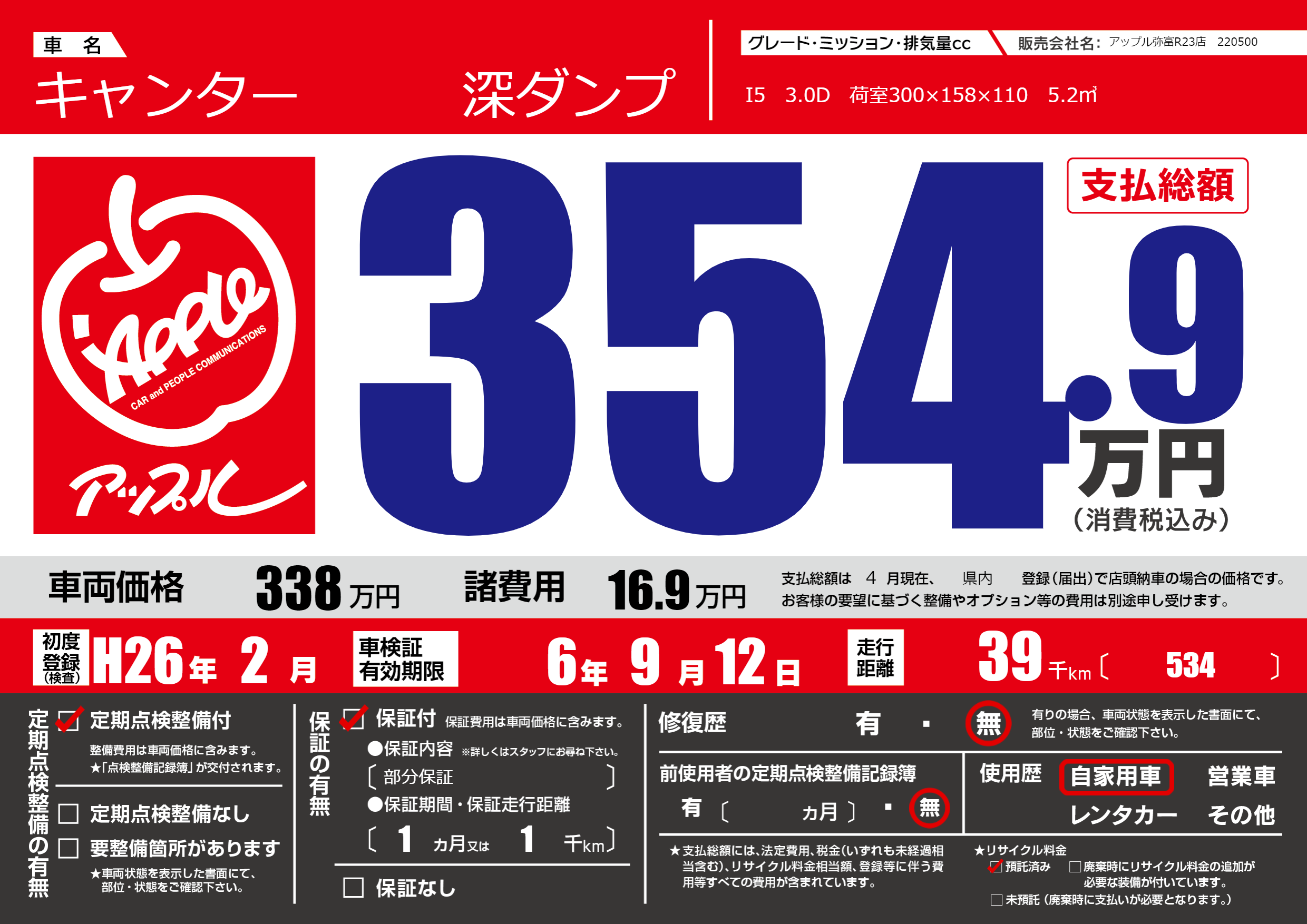 | 走行キロ | 3.9万km | 初年度登録 | H26年2月 |