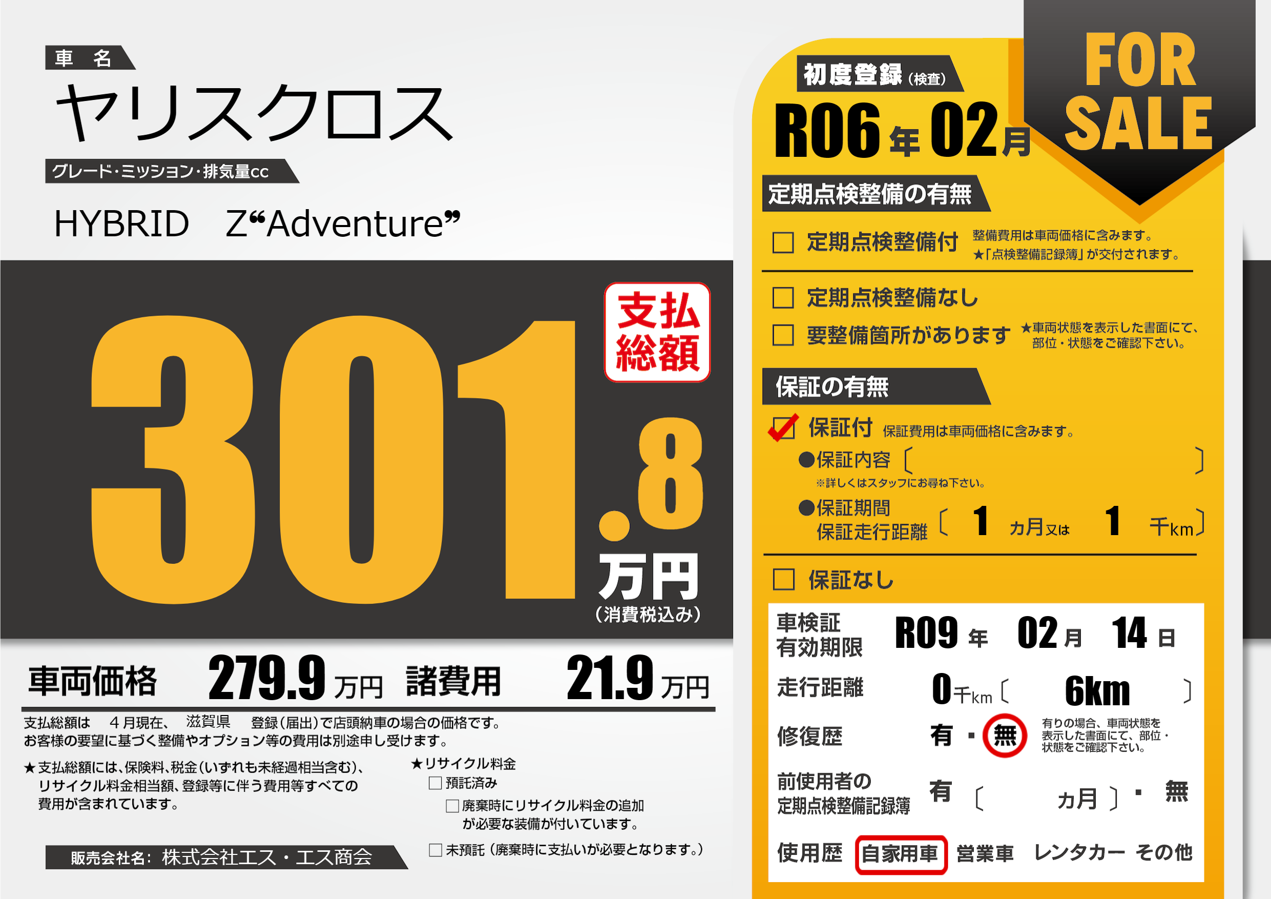 | 走行キロ | - | 初年度登録 | R06年02月 |