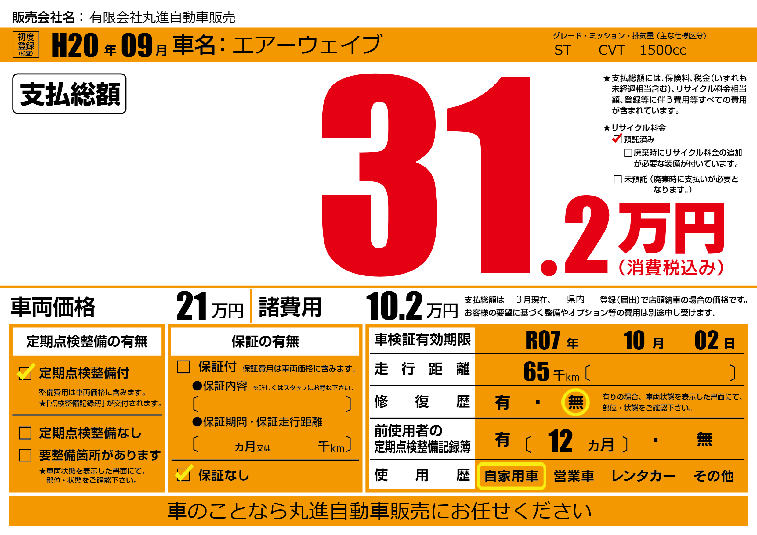 | 車名 | エアーウェイブ | グレード ミッション 排気量 |