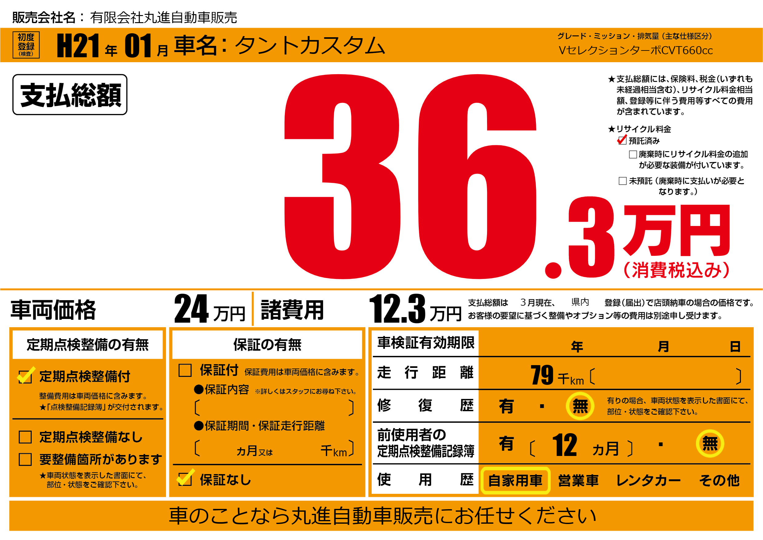 | 車名 | タントカスタム | グレード ミッション 排気量 |