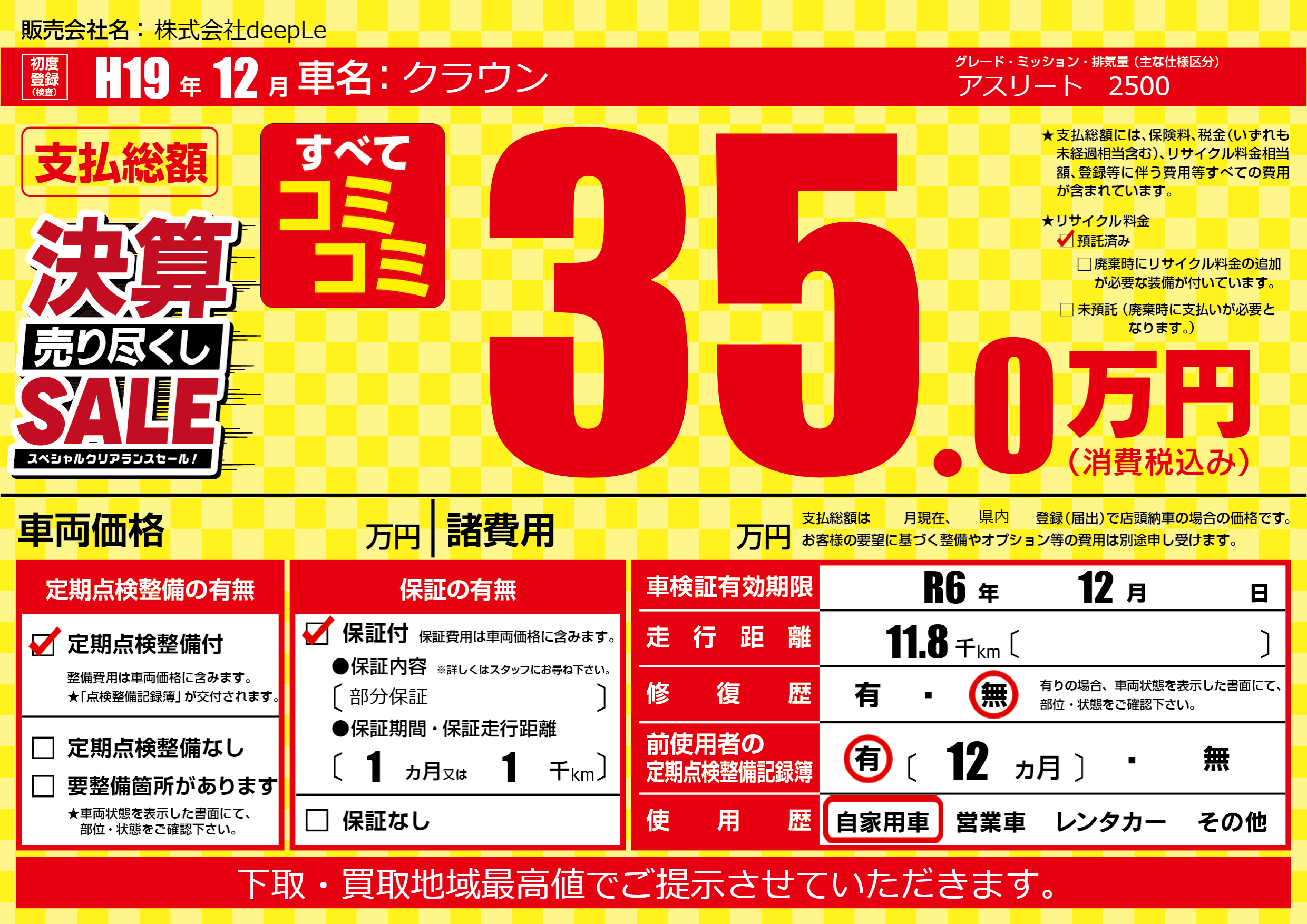 | 車名 | クラウン | グレード ミッション 排気量 |