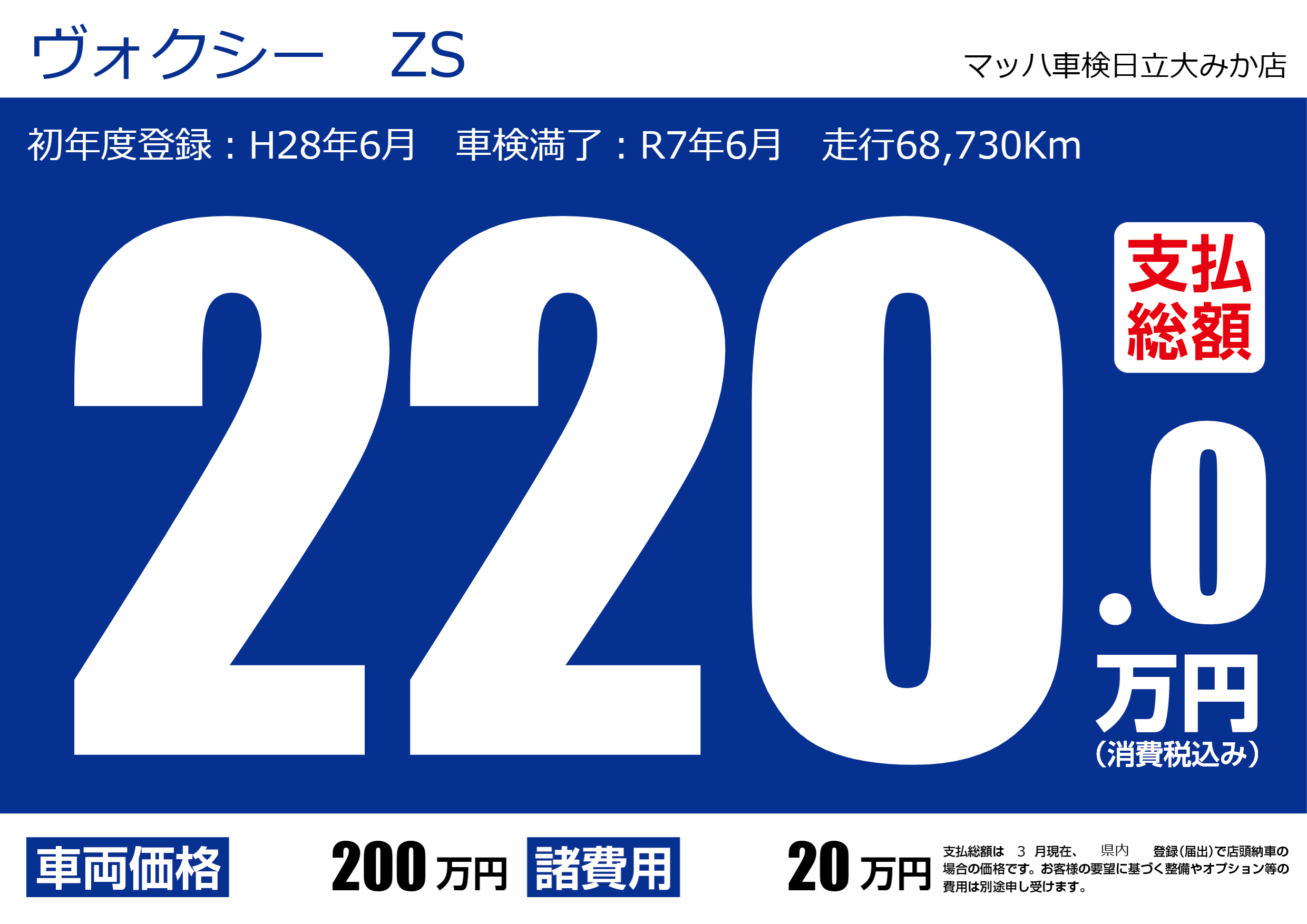 | 車名 | ヴォクシー ZS | グレード ミッション 排気量 |