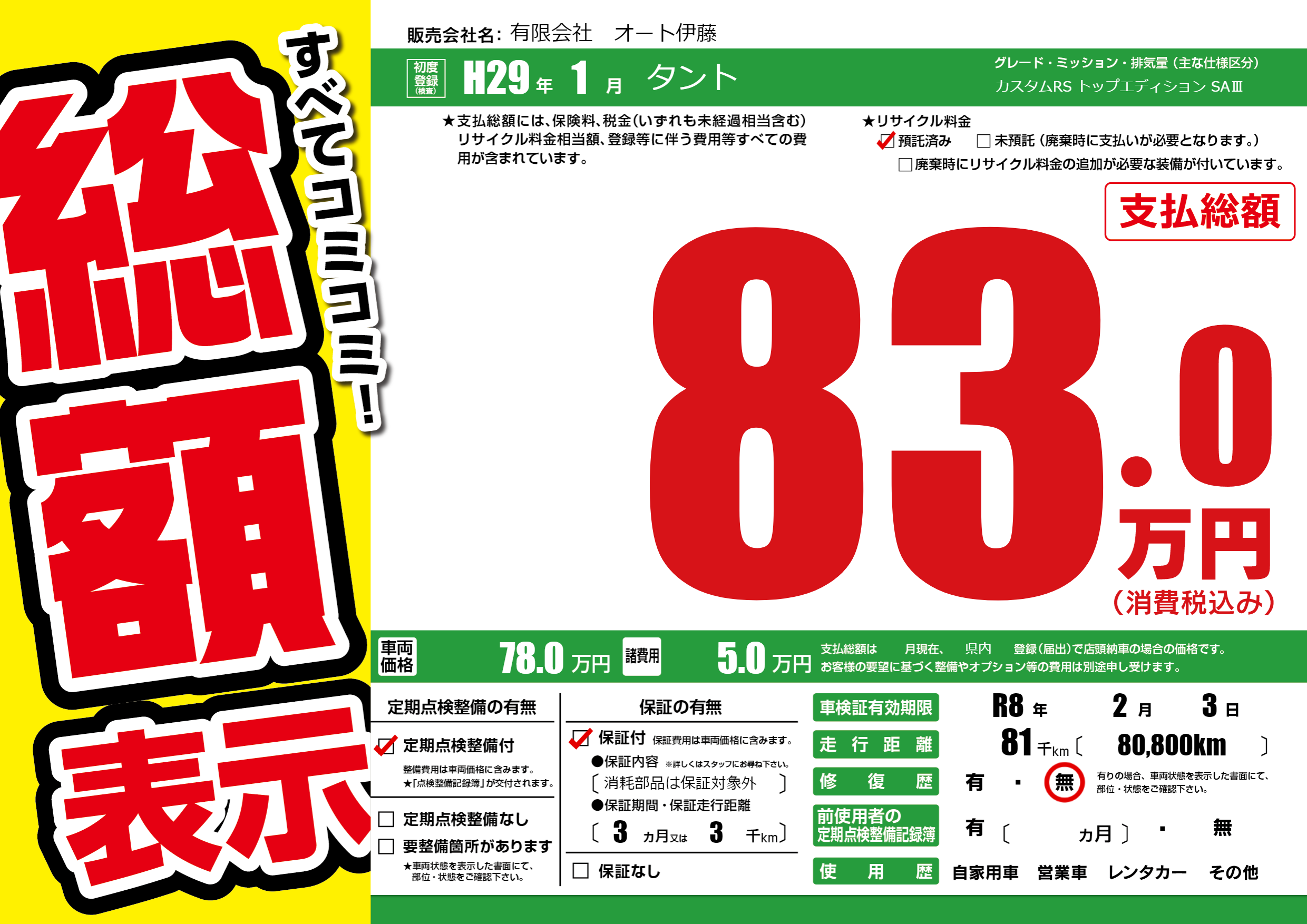 | 走行キロ | 8.1万km | 初年度登録 | H29年1月 |