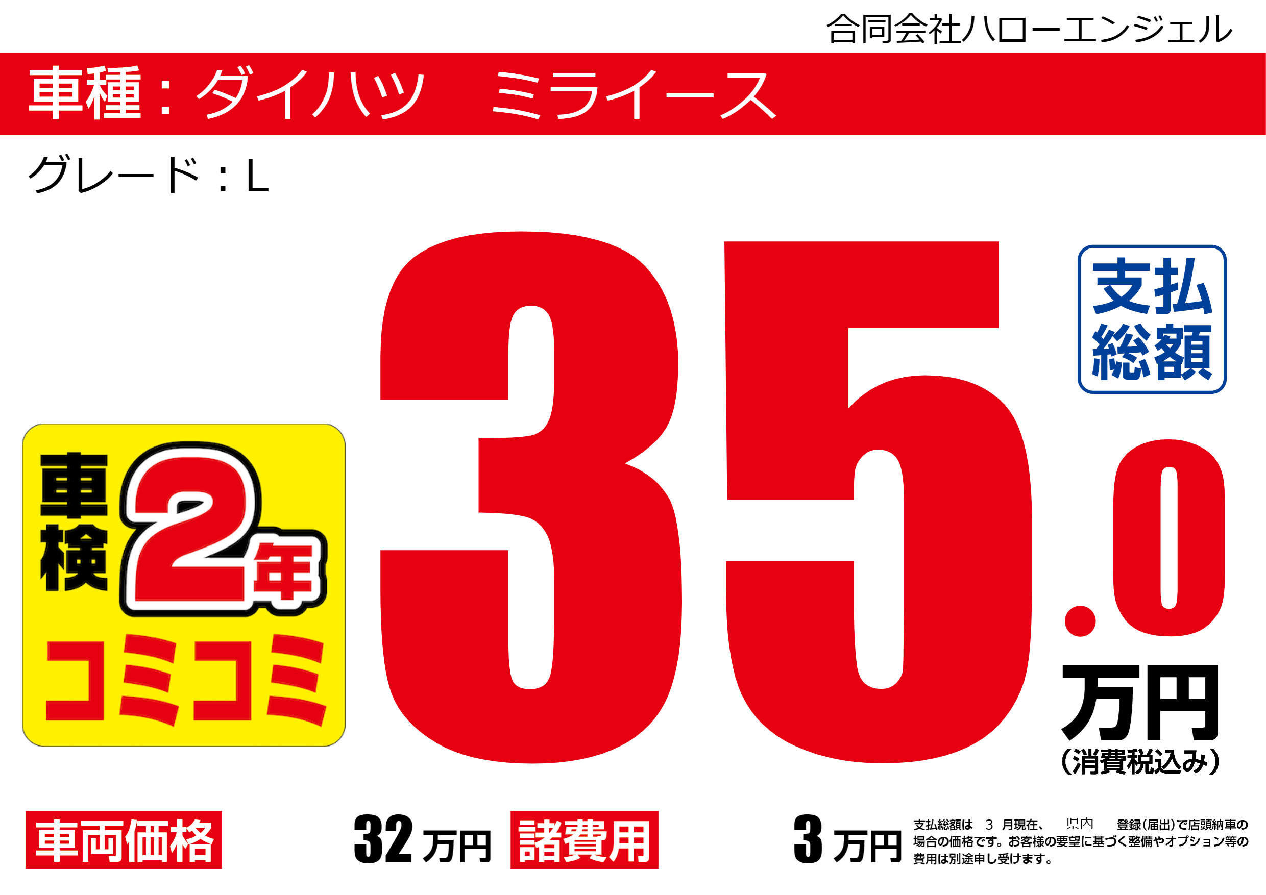 | 車名 | ダイハツ ミライース | グレード ミッション 排気量 |