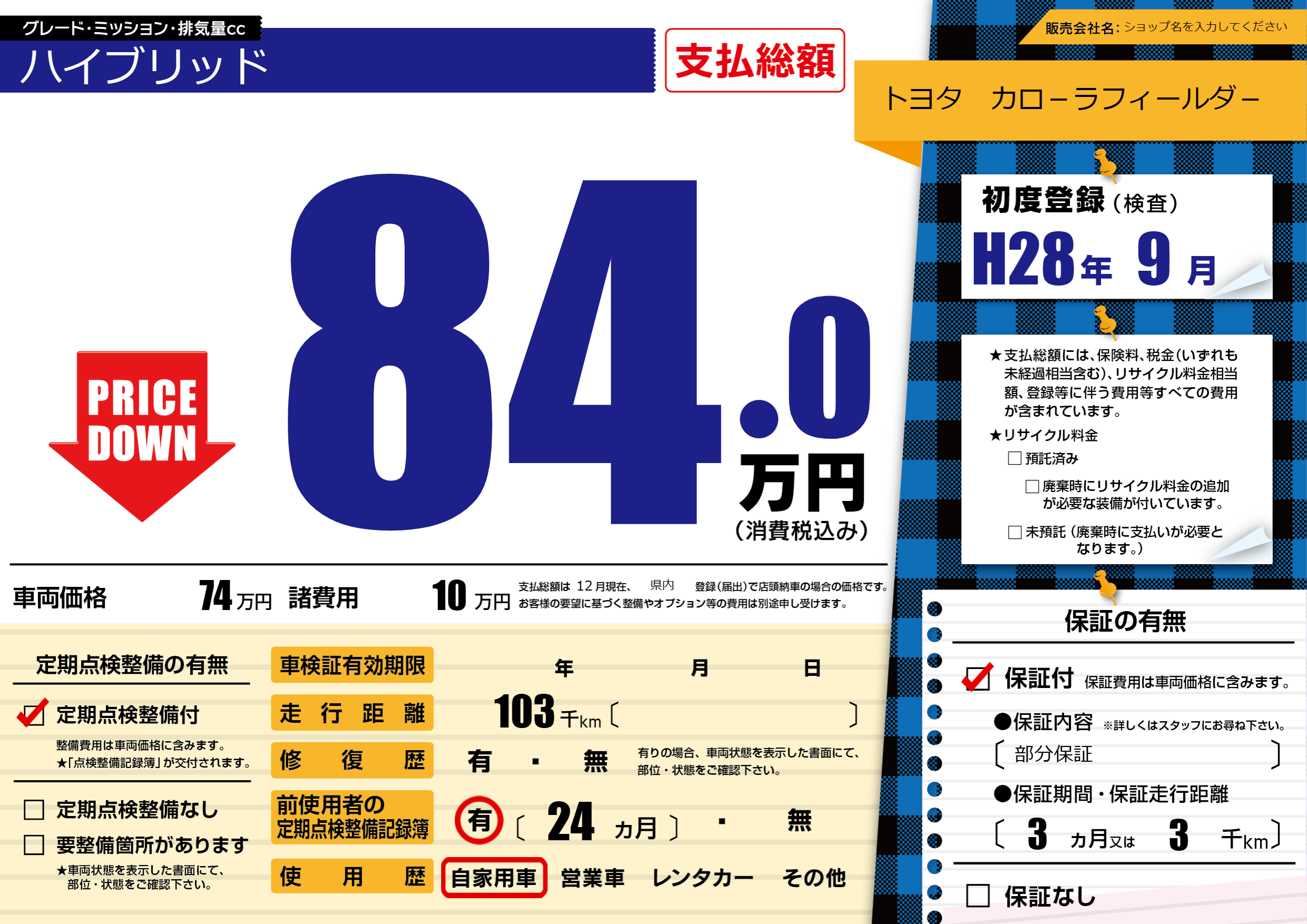 | 定期点検整備 | 定期点検整備あり | ||
