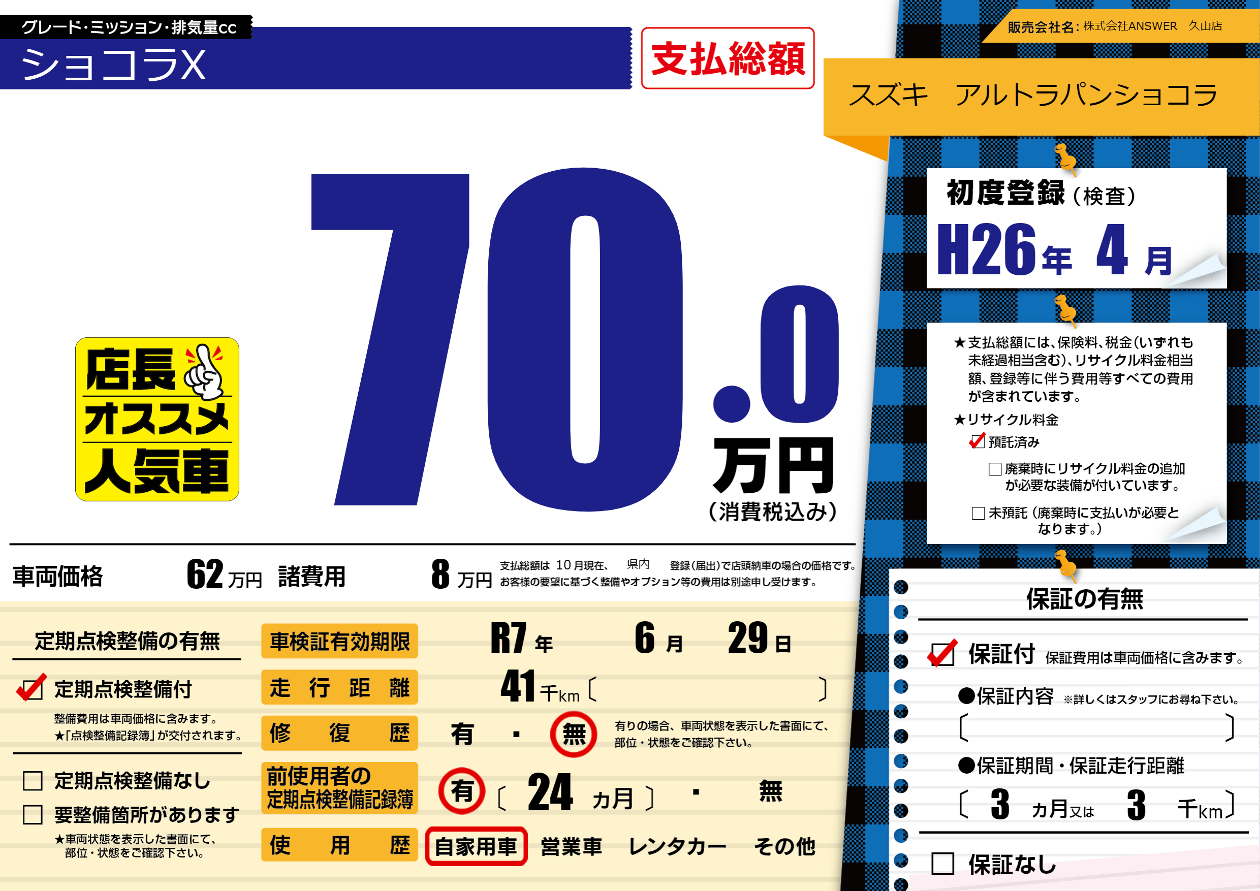 なし | 車検制限 | R7年6月29月 |