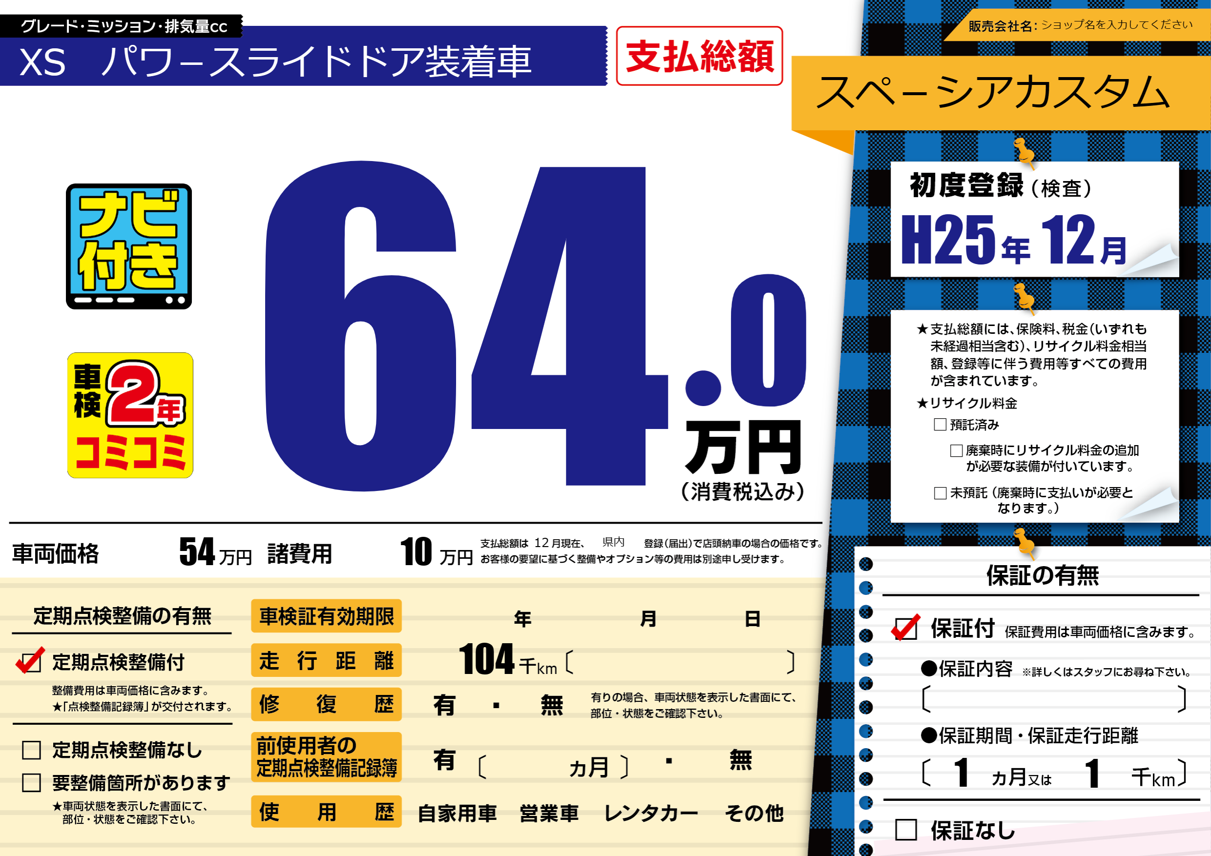 | 車検制限 | - 年 - 月 - 日 | ||