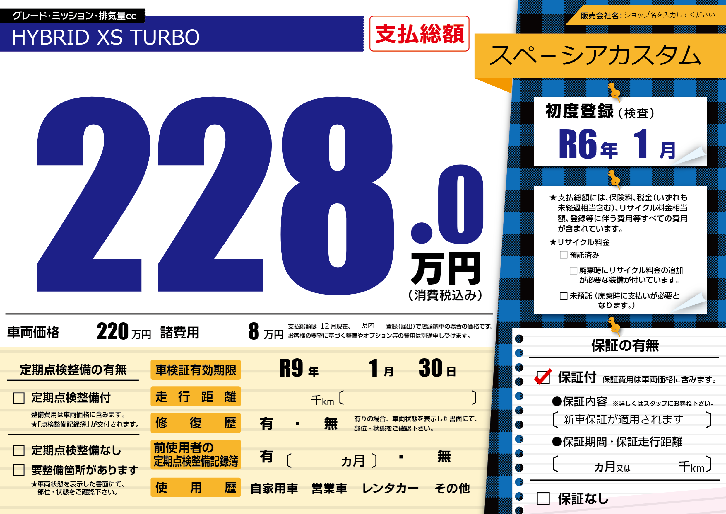 なし | 車検制限 | R9年1月30月 |