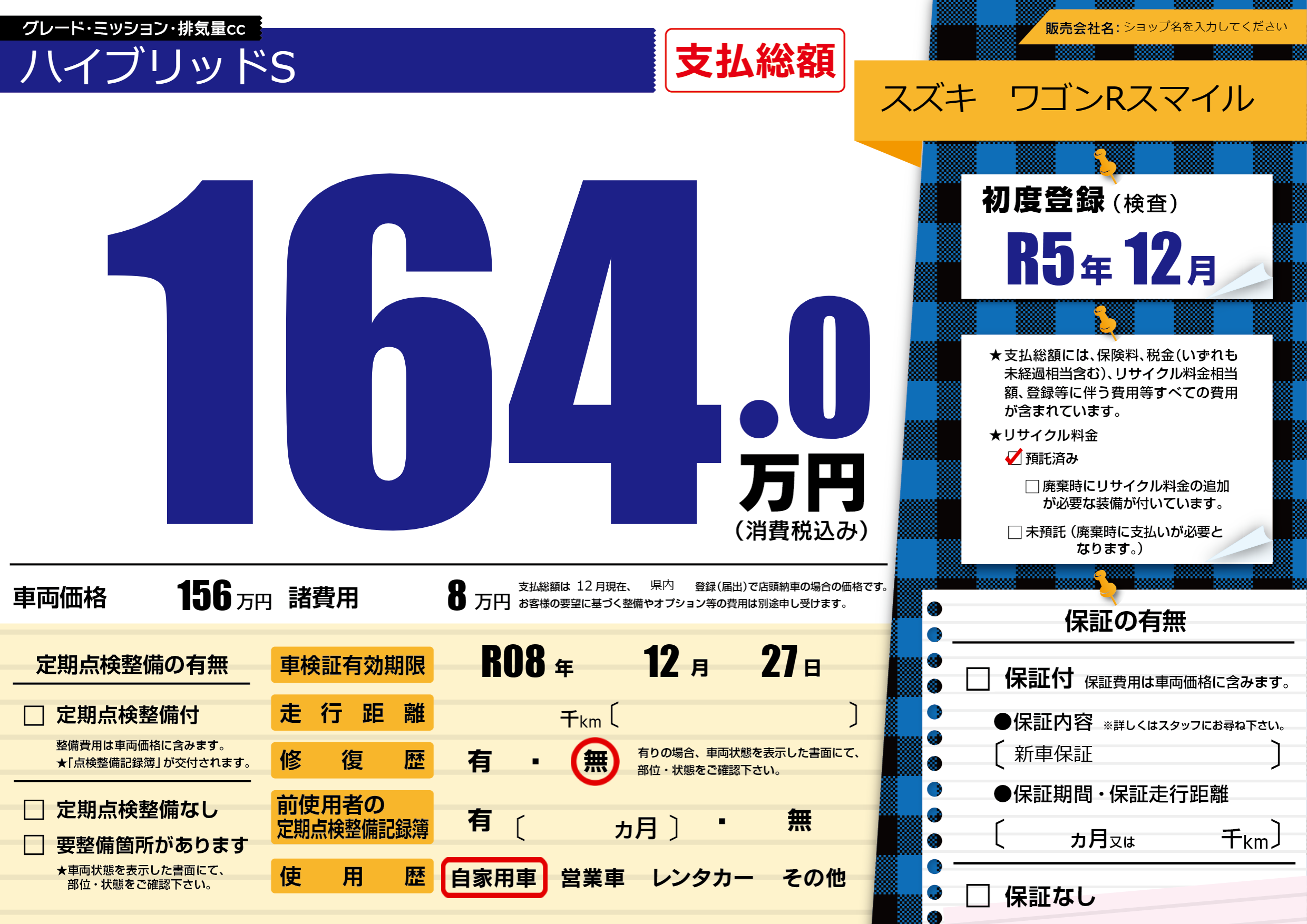 保証なし 保証内容(新車保証) ---ヶ月または()千kmまで |