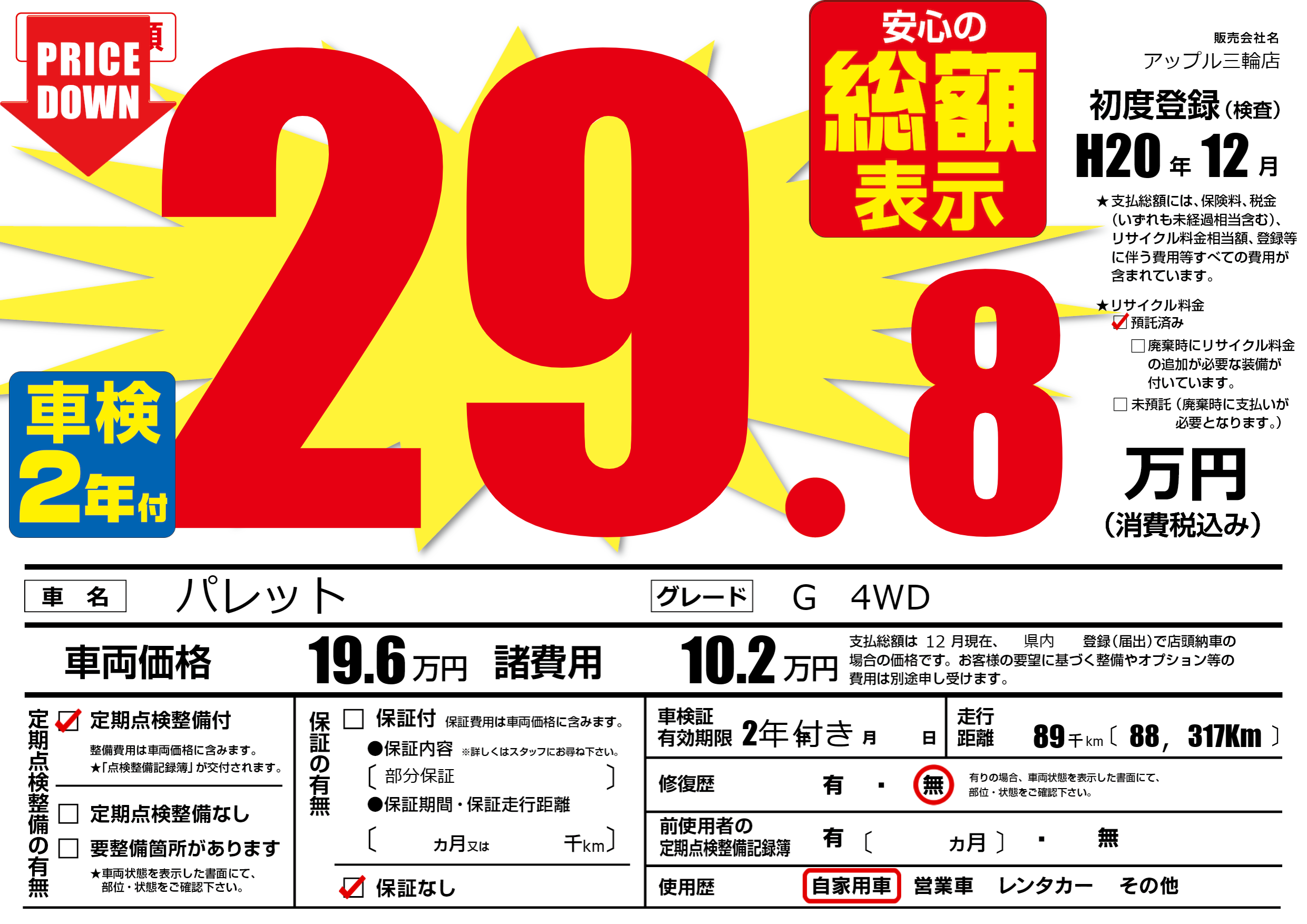 なし | 車検制限 | 2年年付き月---月 |