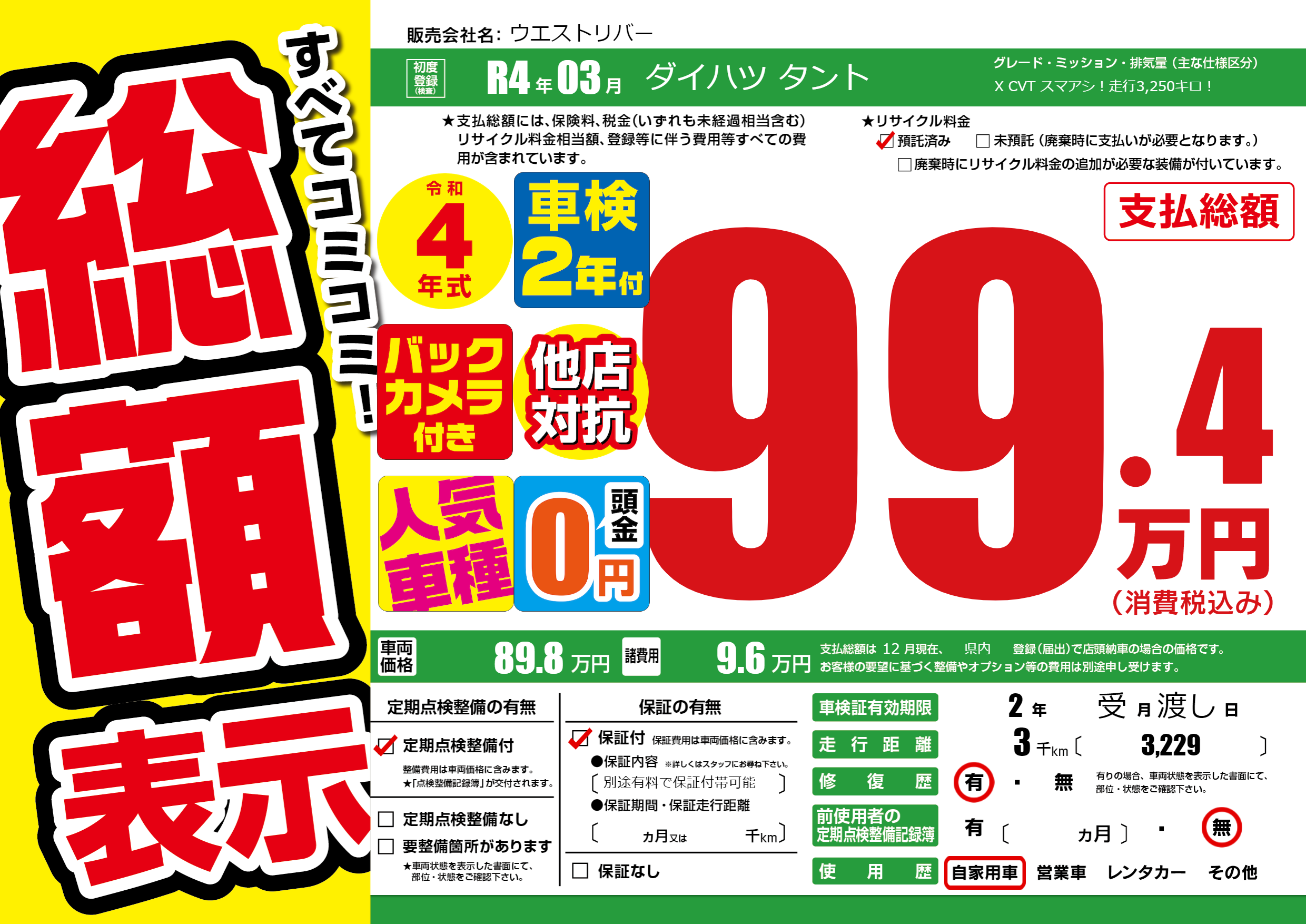 | 車検制限 | 2年 受月 渡し日 | ||