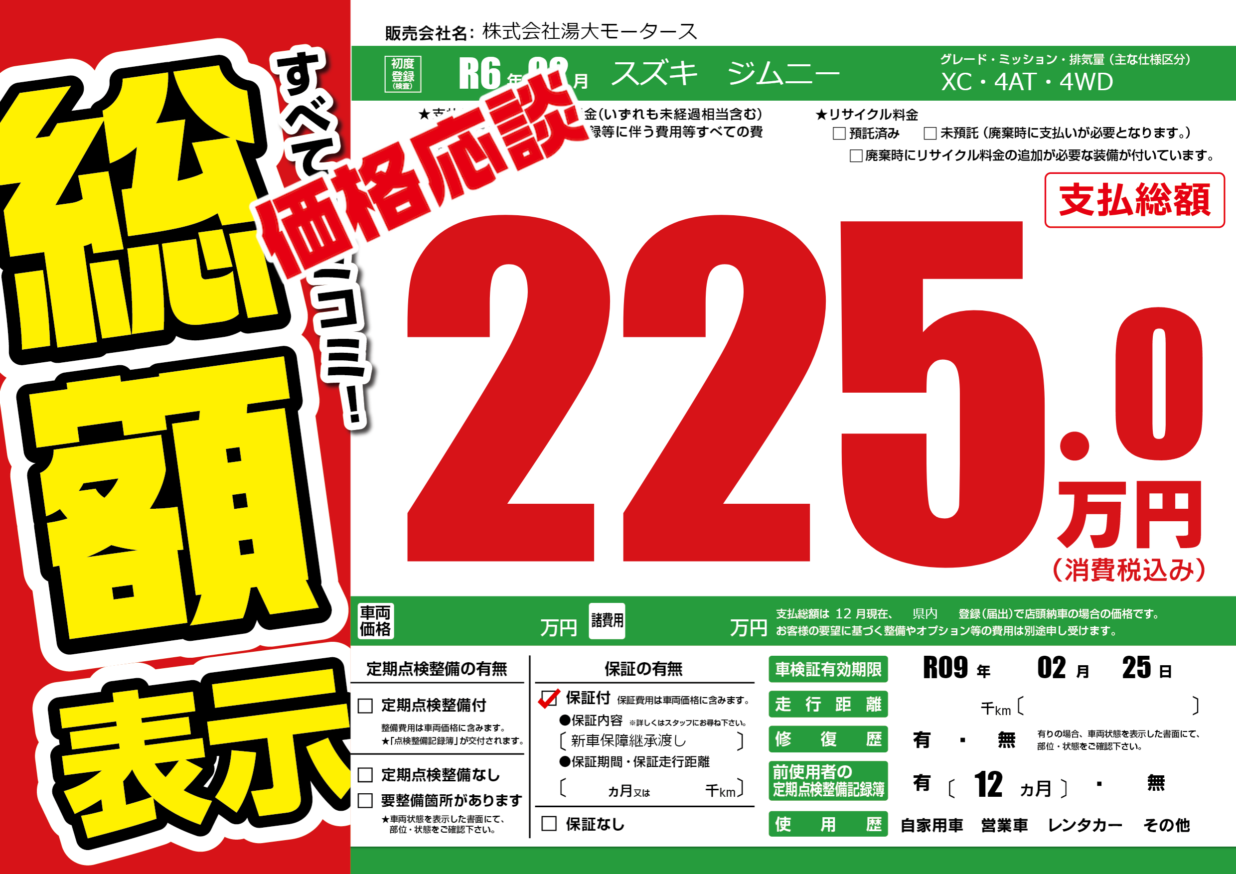 なし | 車検制限 | R09年02月25月 |