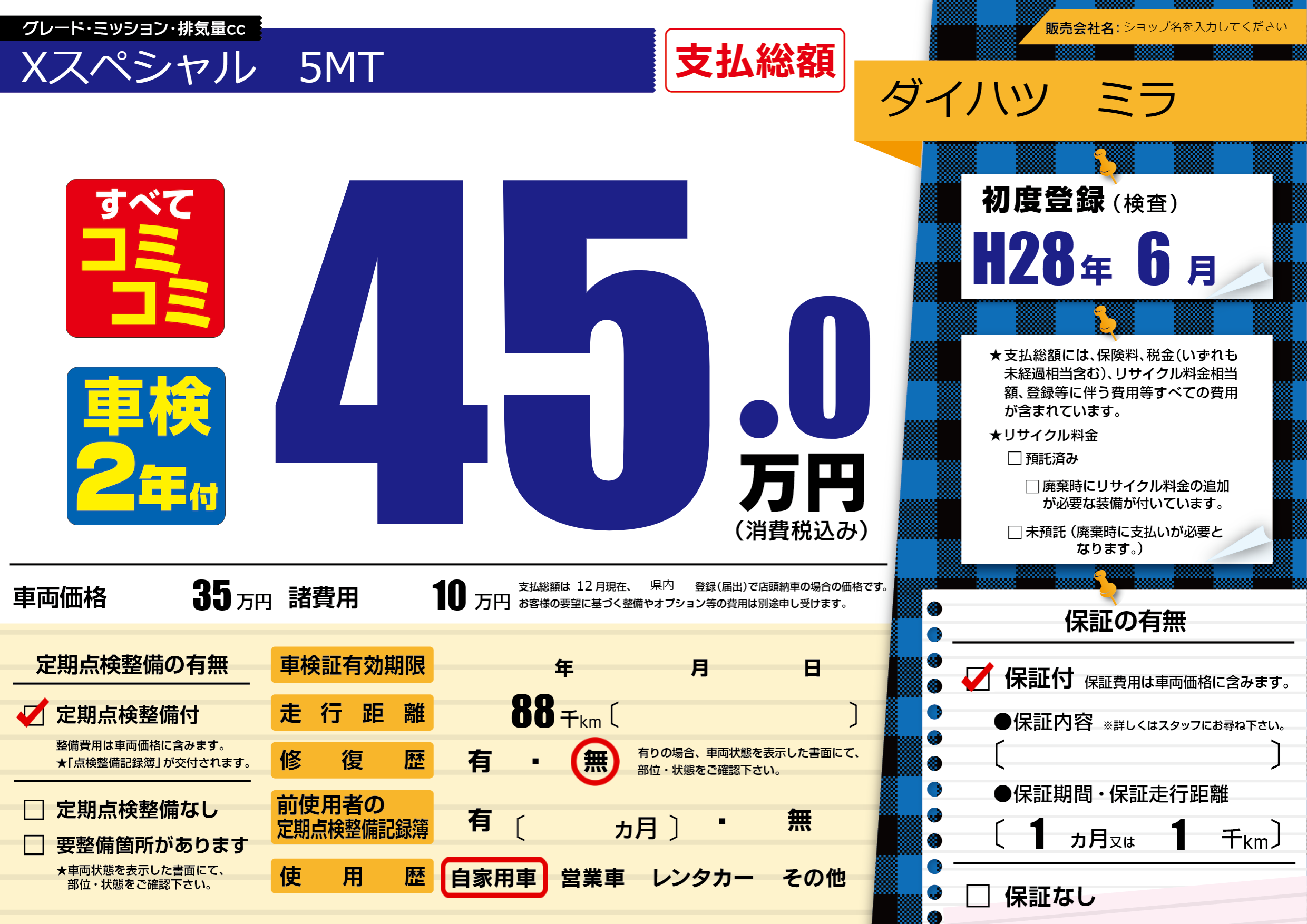 | 車検制限 | - 年 - 月 - 日 | ||