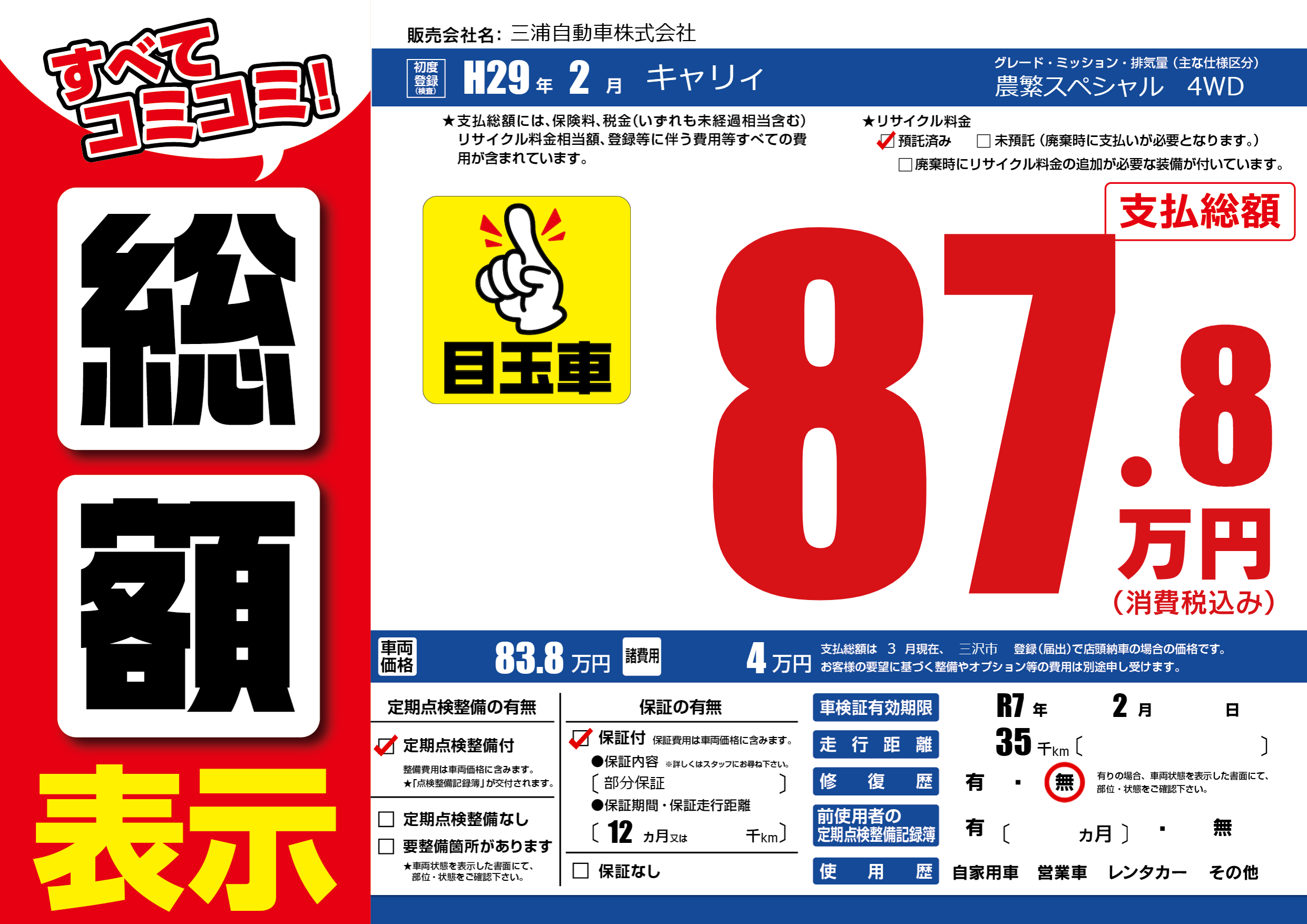 | 車名 | キャリィ | グレード ミッション 排気量 |