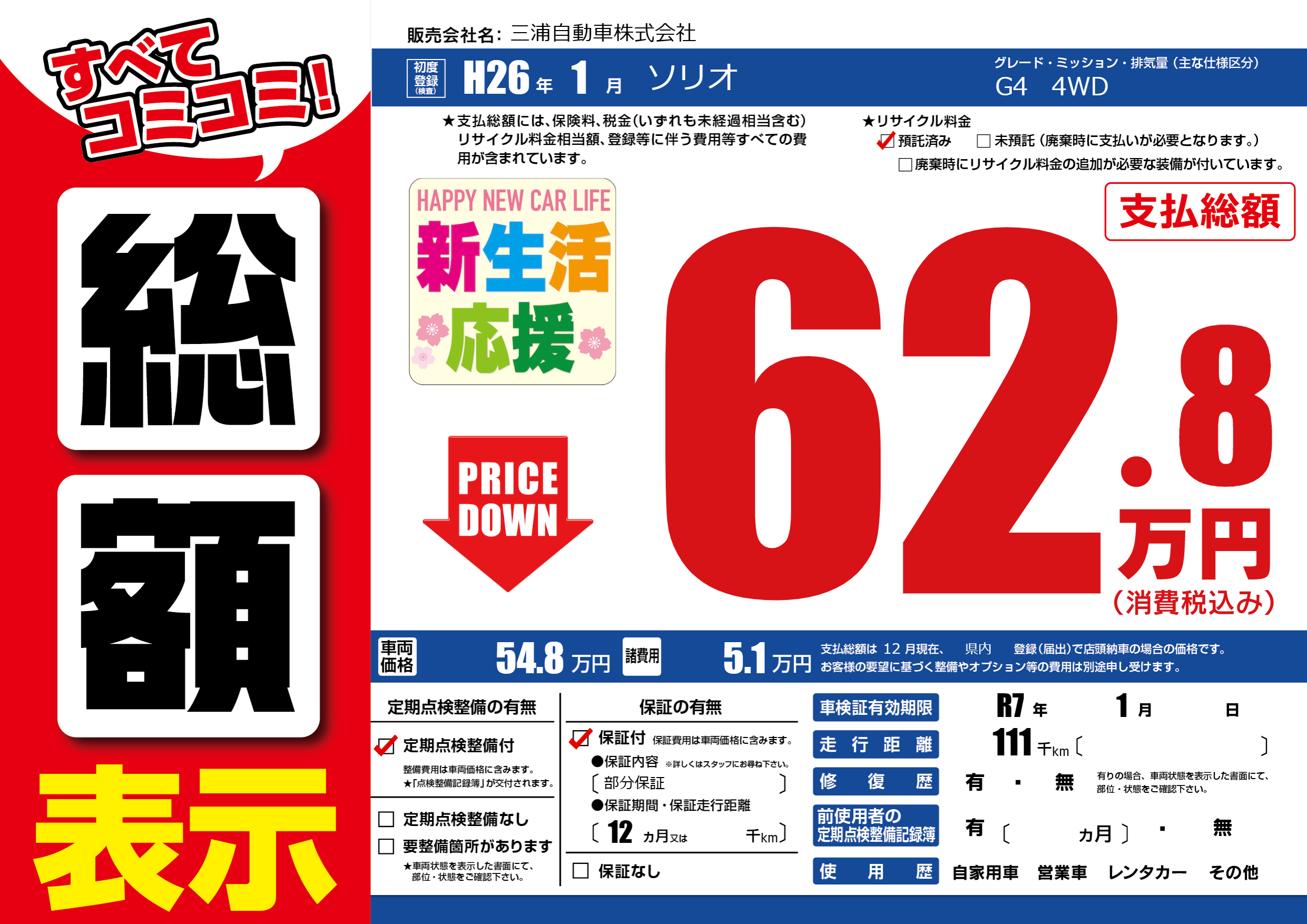 | 車検制限 | R7年 1月 - 日 | ||