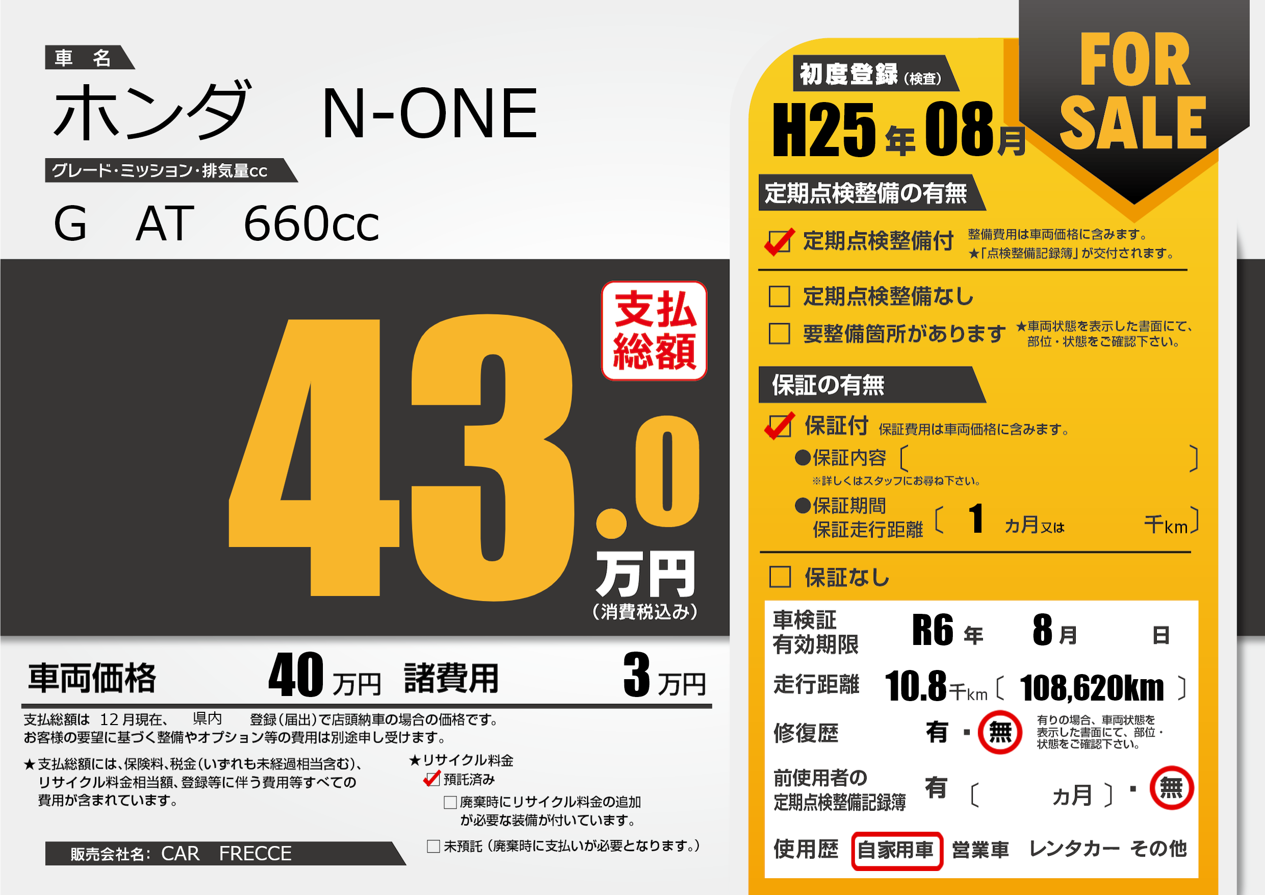 なし | 車検制限 | R6年8月---月 |