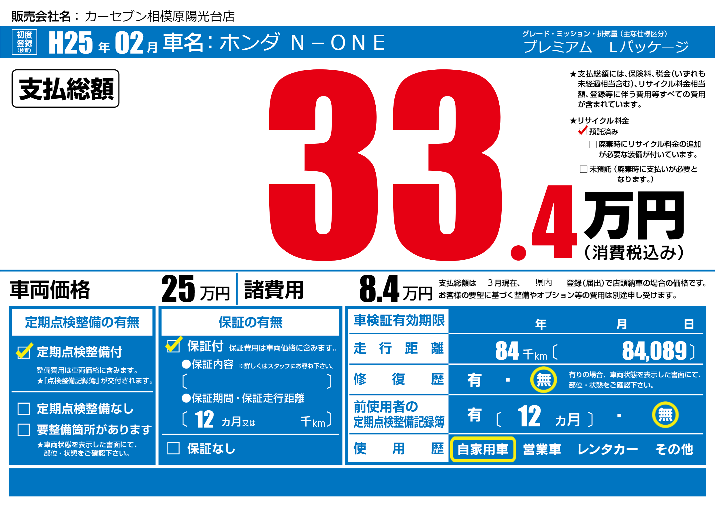 | 定期点検整備 | 定期点検整備あり | ||