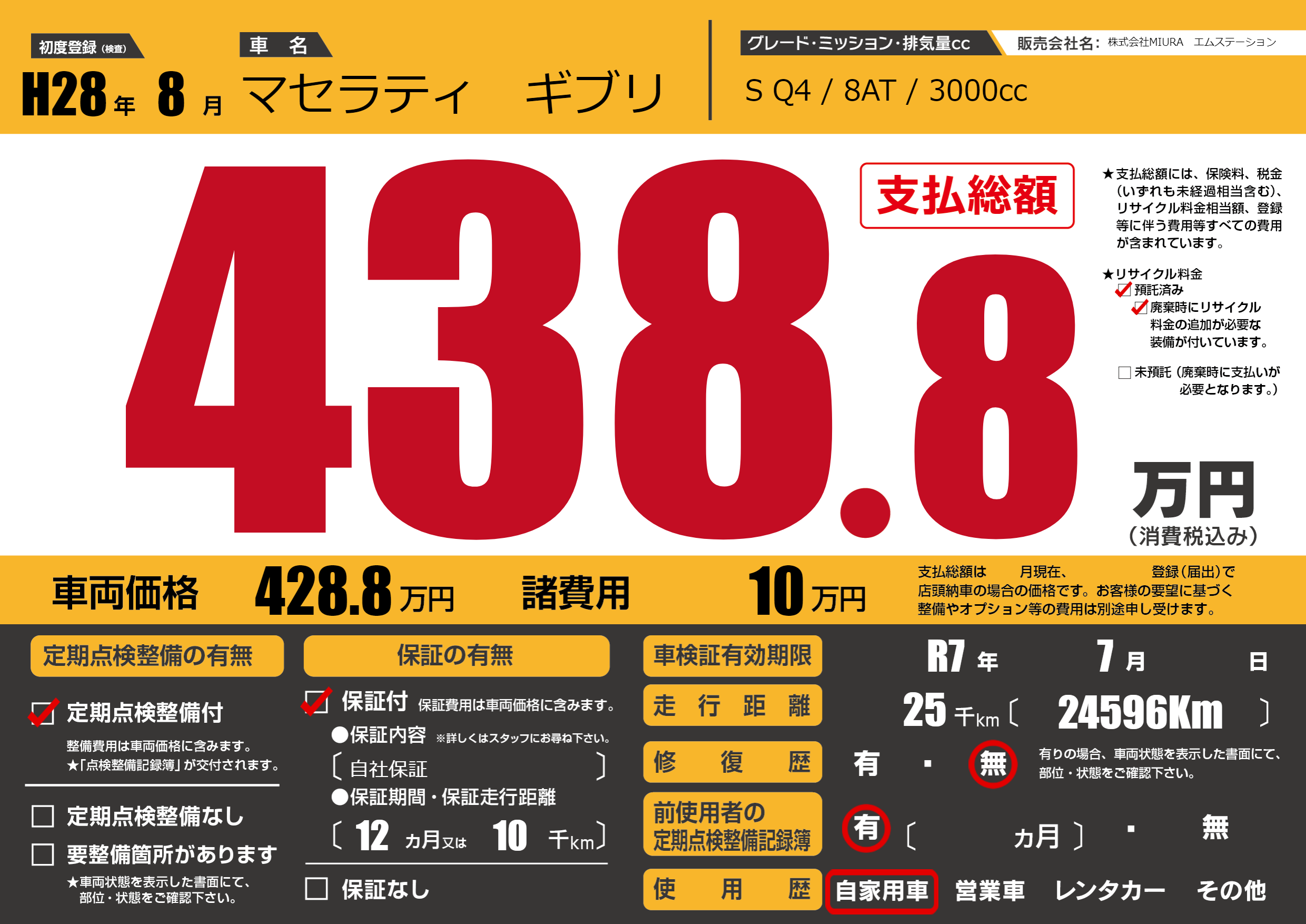 | 車名 | マセラティ ギブリ | グレード ミッション 排気量 |