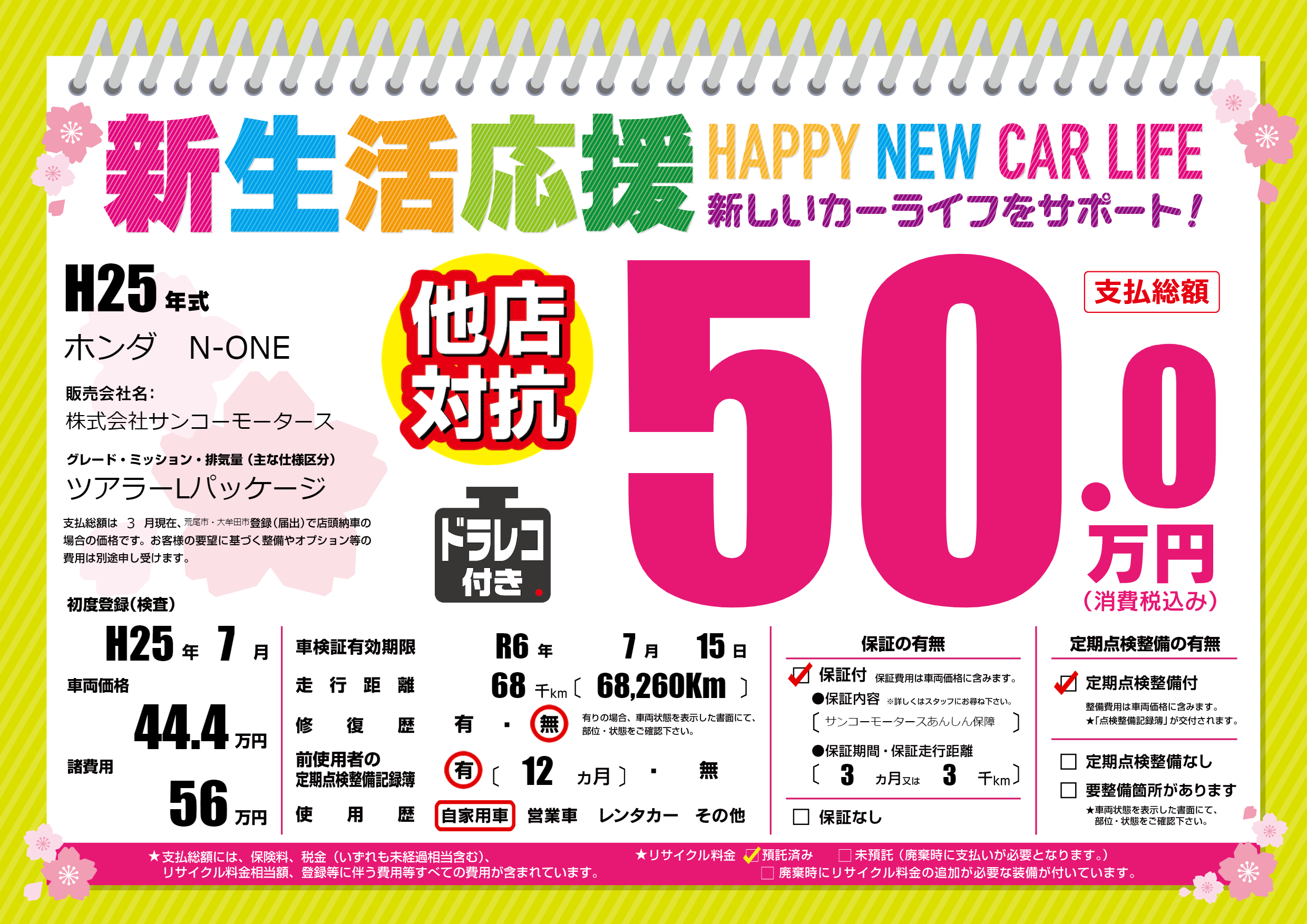 | 車名 | ホンダ N-ONE | グレード ミッション 排気量 |