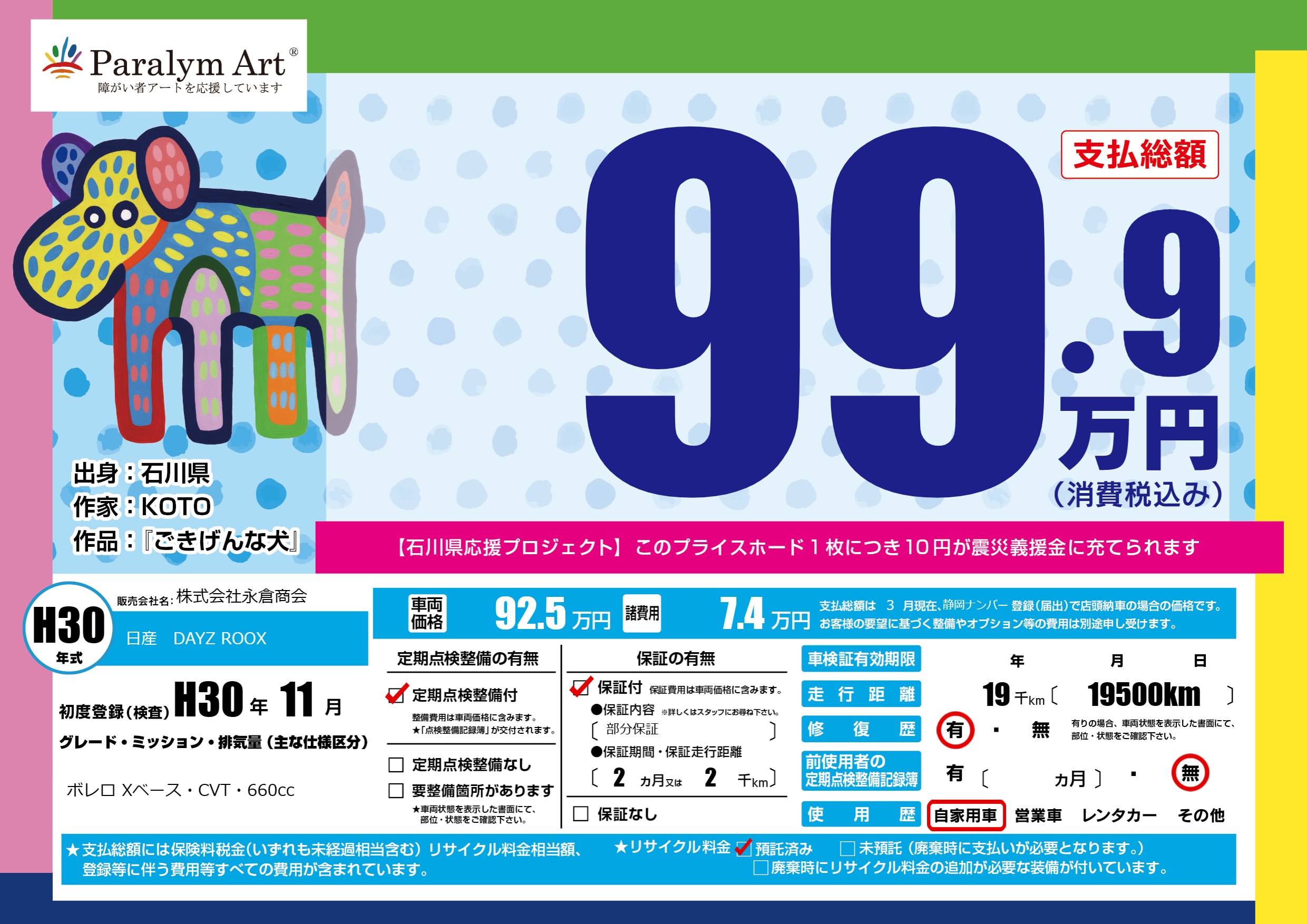 | 車名 | 日産 DAYZ ROOX | グレード ミッション 排気量 |