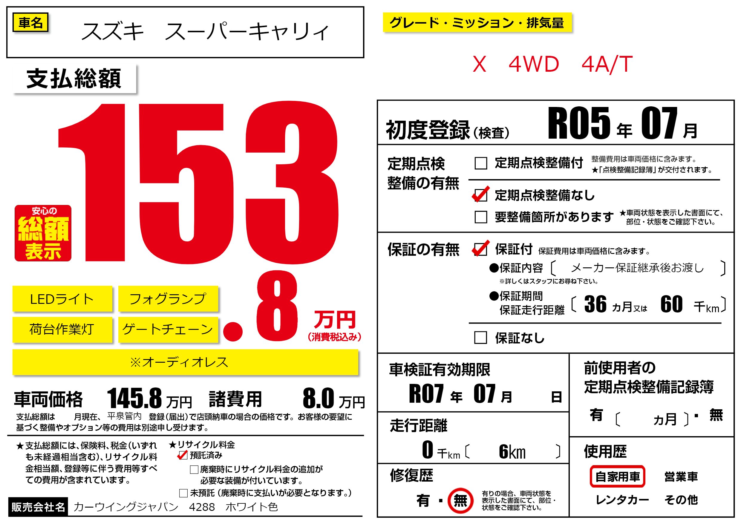なし | 車検制限 | R07年07月---月 |