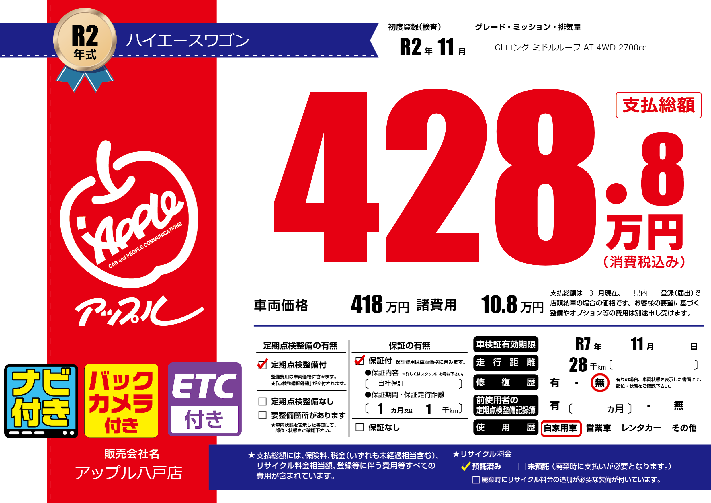 | 走行キロ | 2.8万km | 初年度登録 | R2年11月 |