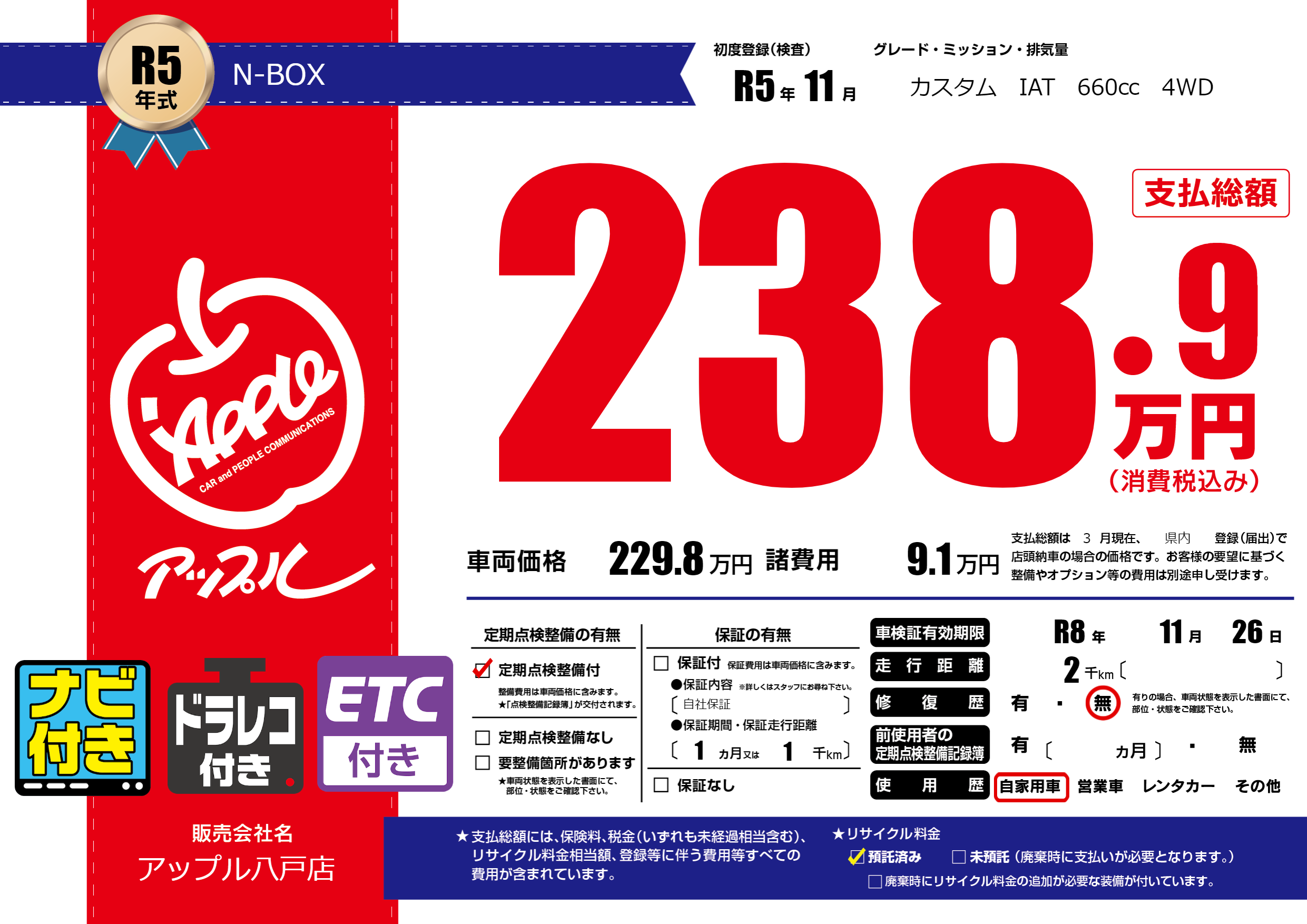 なし | 車検制限 | R8年11月26月 |