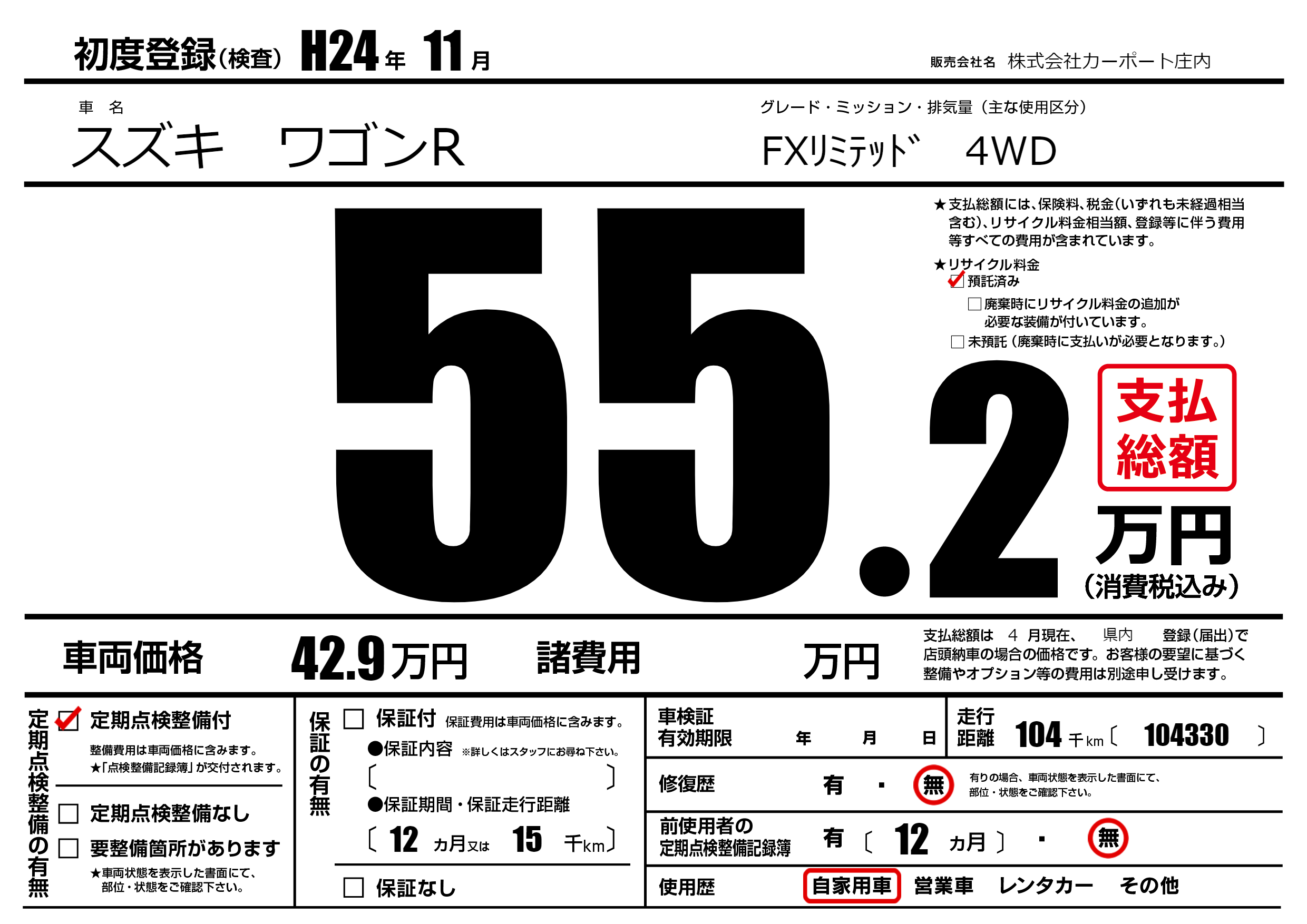 | 定期点検整備 | 定期点検整備あり | ||