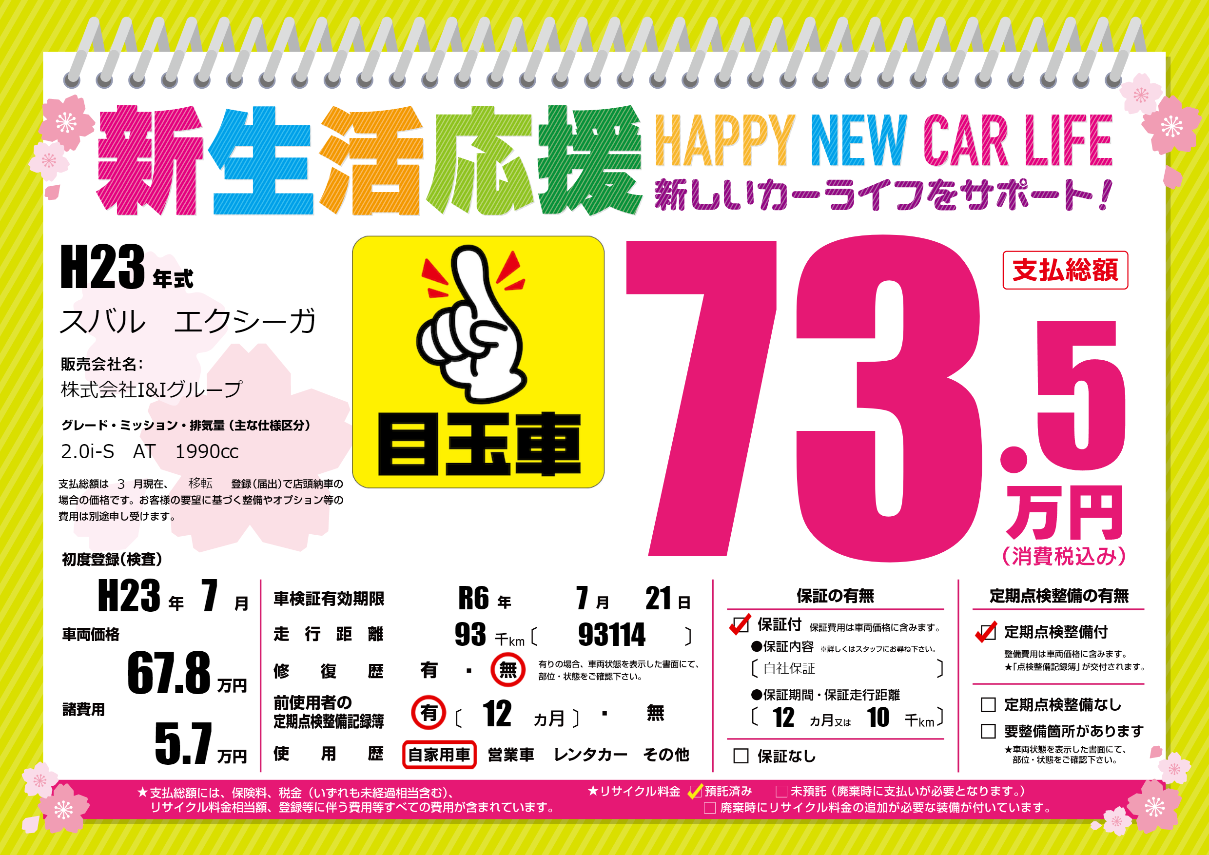 | 車名 | スバル エクシーガ | グレード ミッション 排気量 |