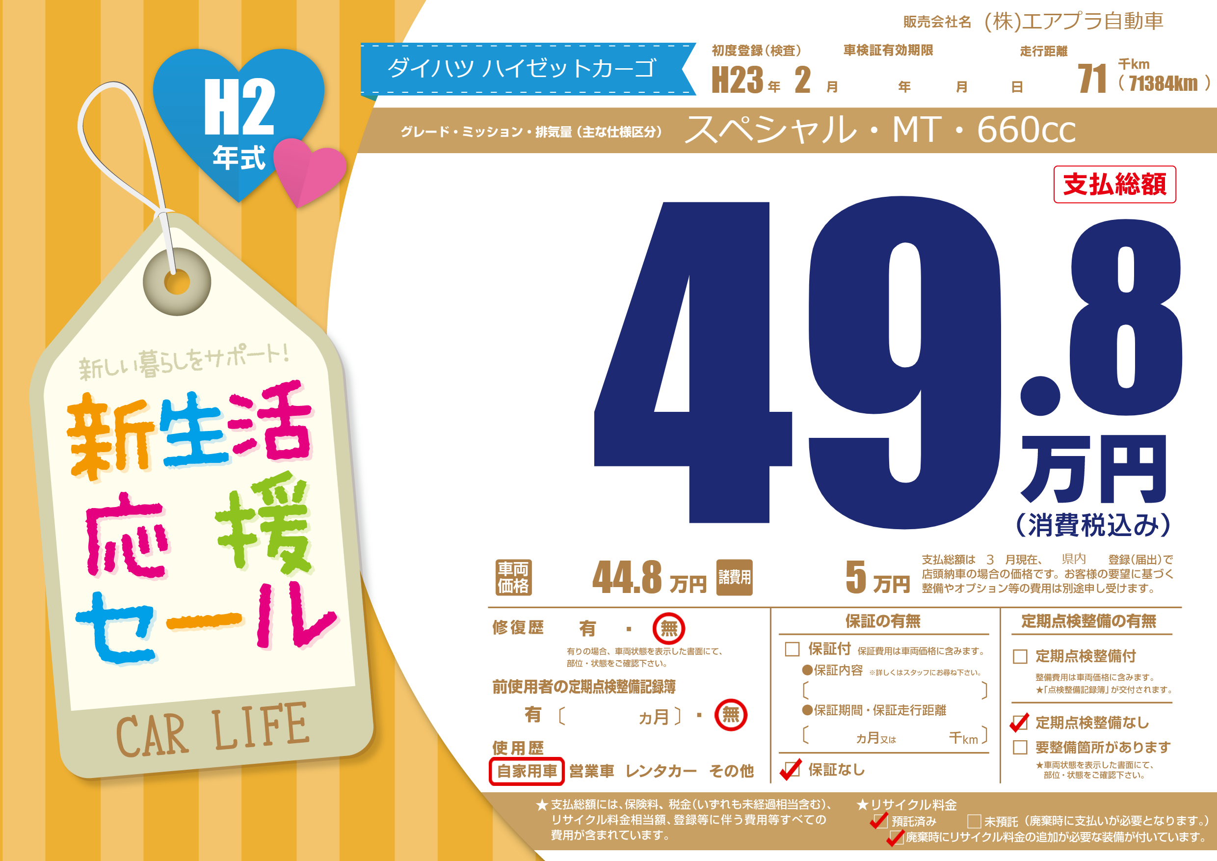 初年度登録 H23年2月