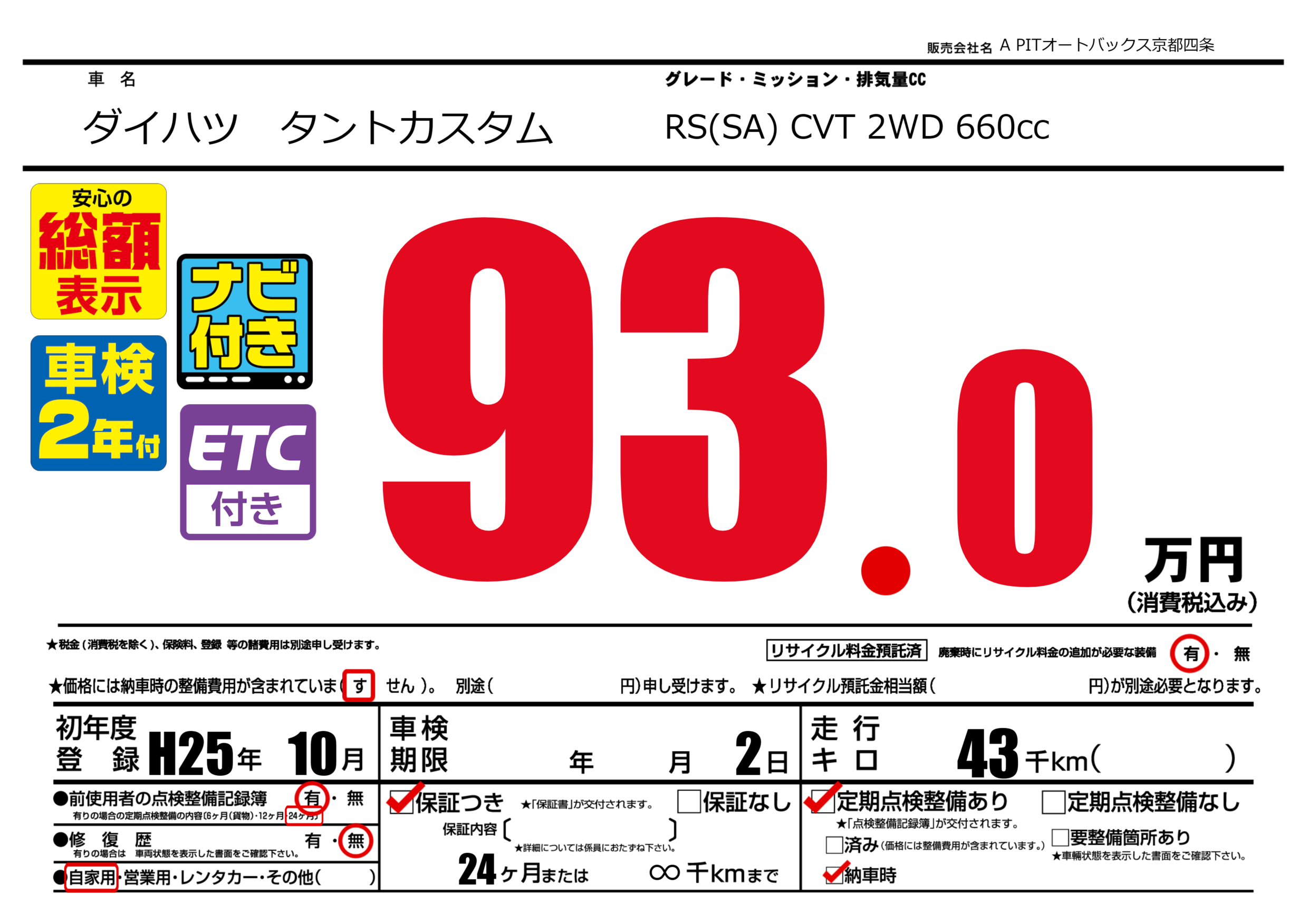 | 走行キロ | 4.3万km | 初年度登録 | H25年10月 |