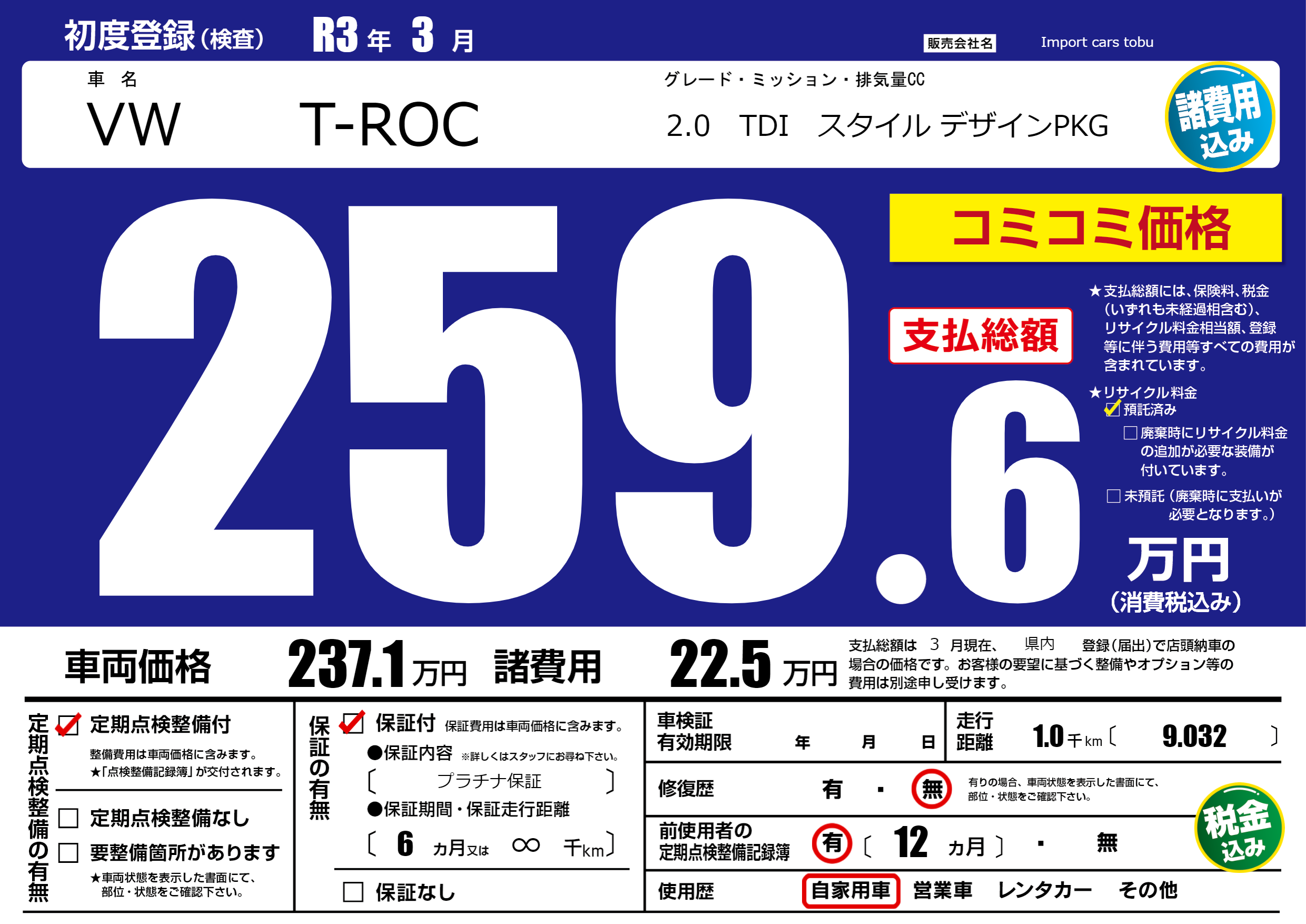 保証付き 保証内容( プラチナ保証) 6ヶ月または(∞)千kmまで |