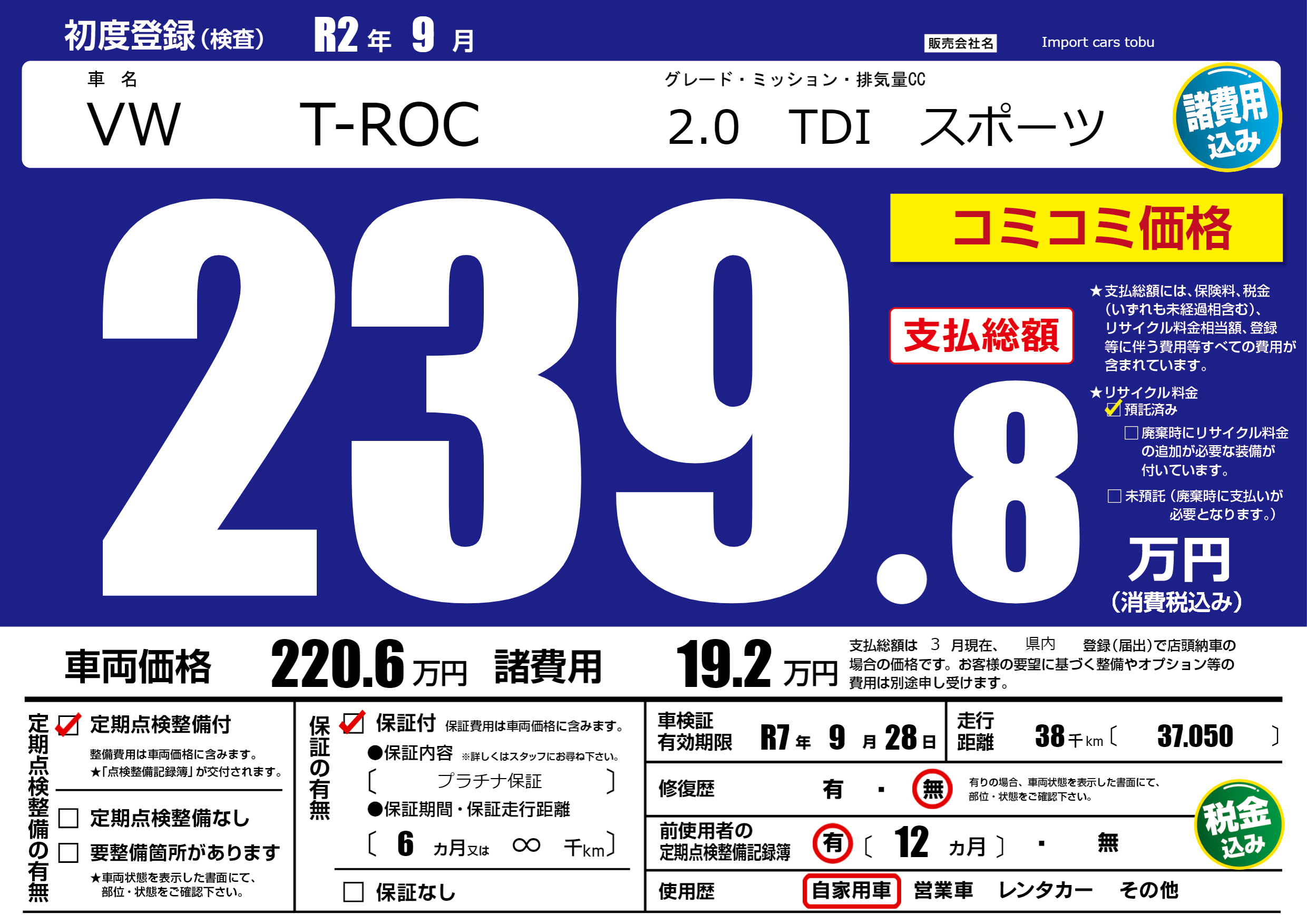 | 車検制限 | R7年 9月 28日 | ||