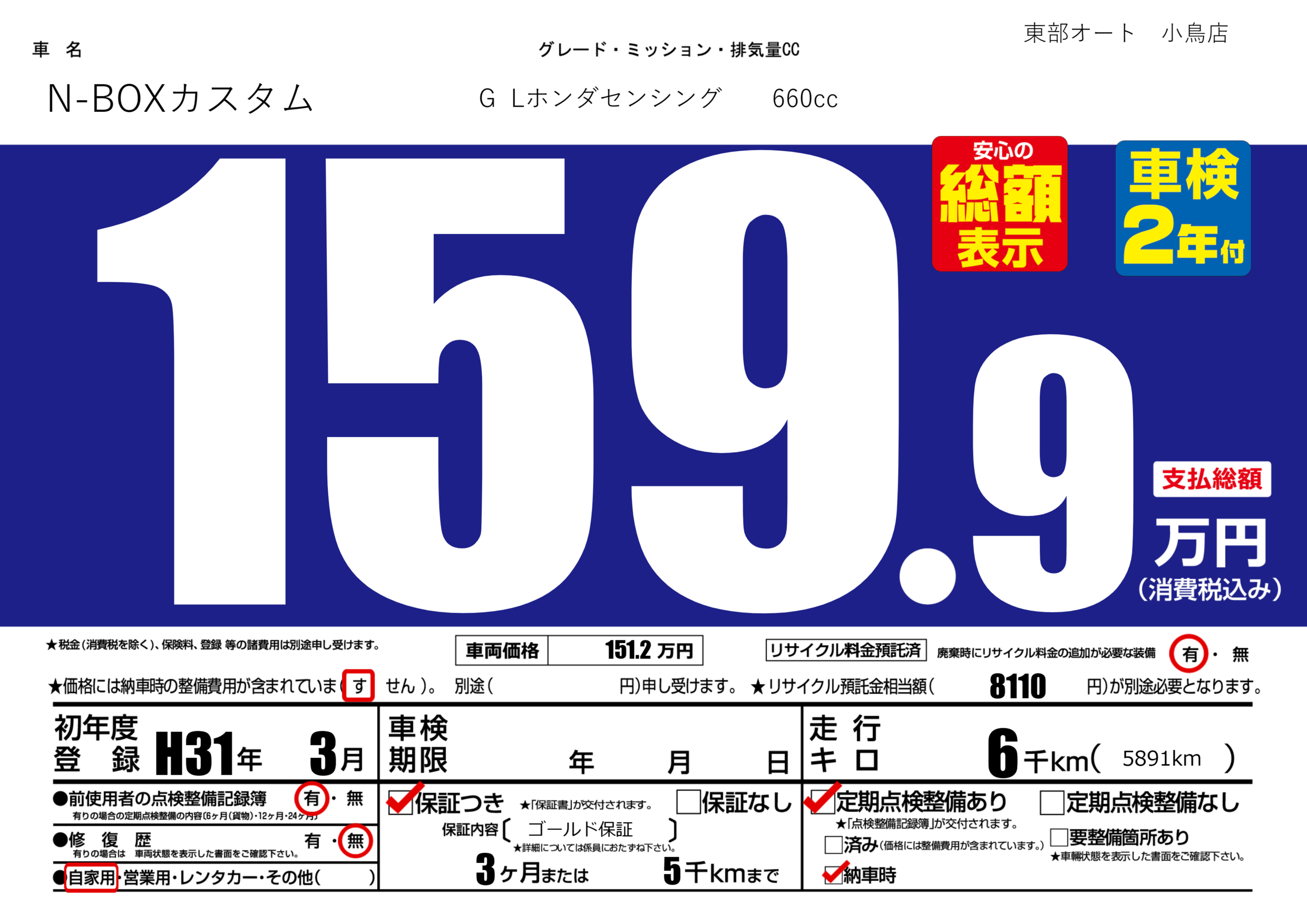 | 定期点検整備 | 定期点検整備あり 納車時あり | ||