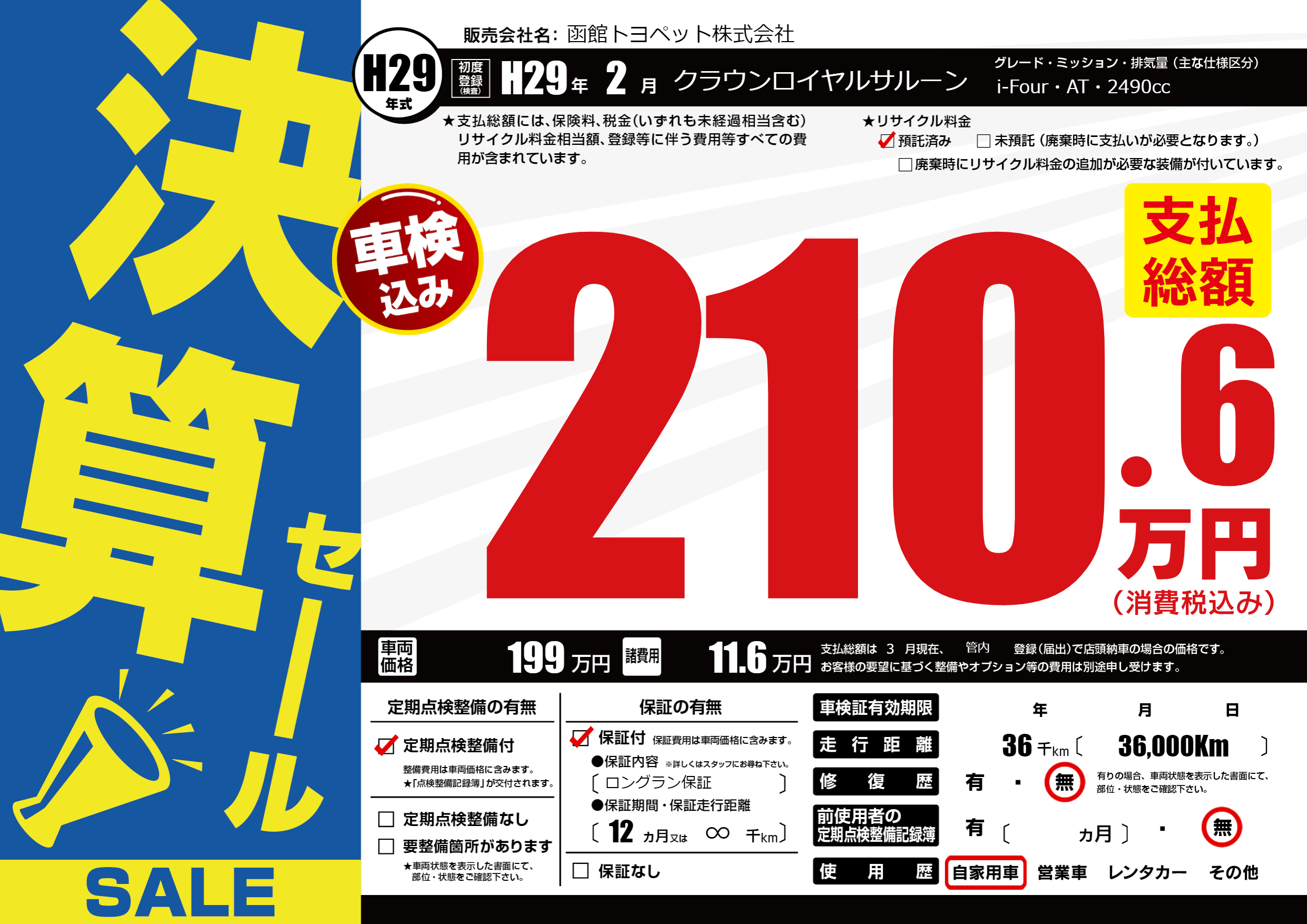 | 車名 | クラウンロイヤルサルーン | グレード ミッション 排気量 |
