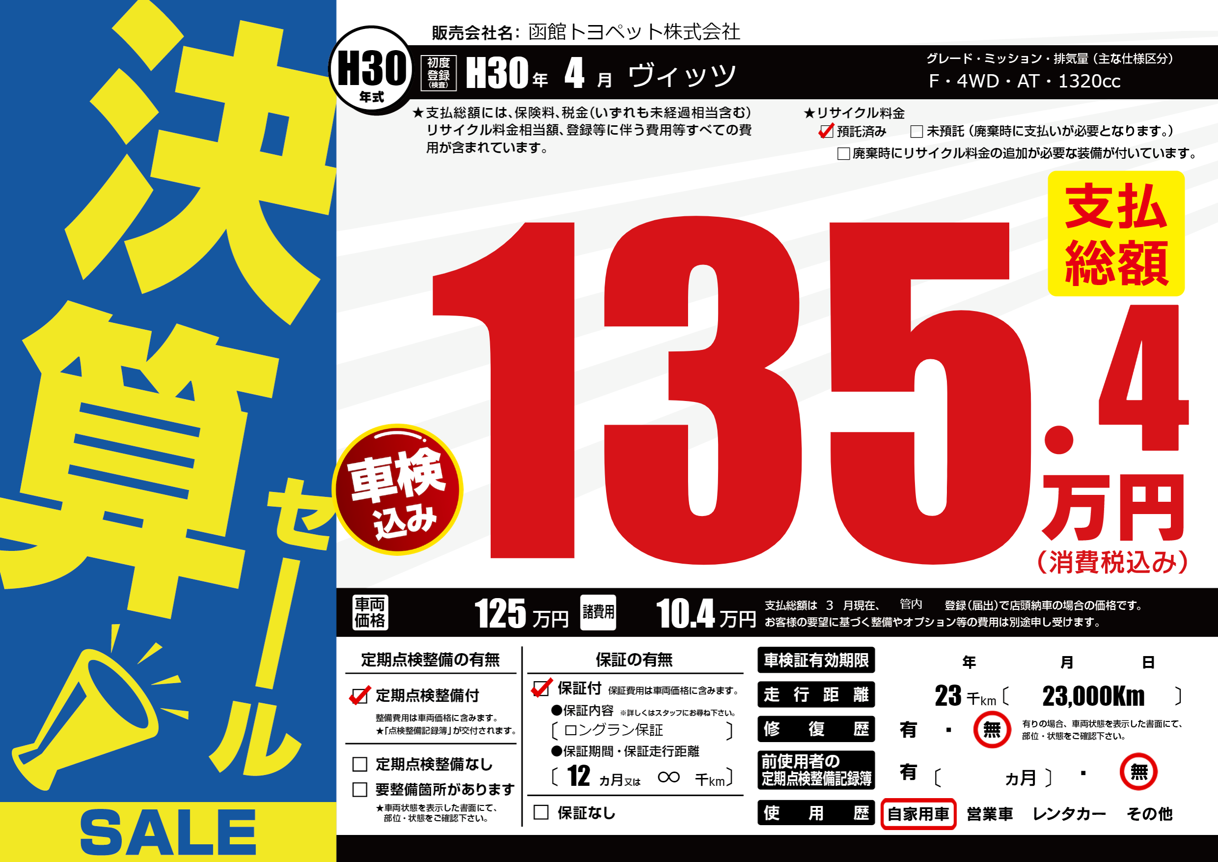 | 車名 | ヴィッツ | グレード ミッション 排気量 |