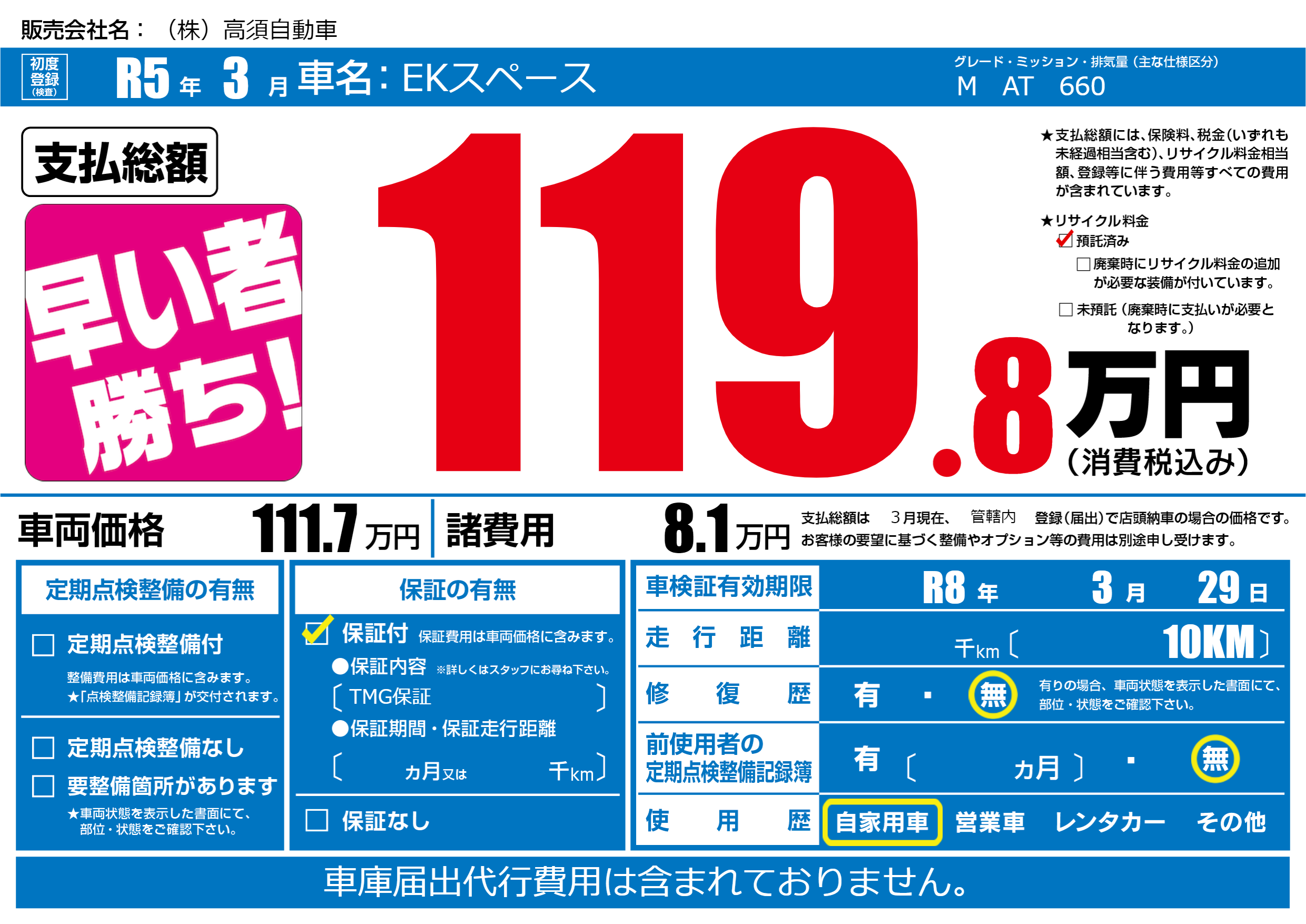 保証付き 保証内容(TMG保証) ---ヶ月または()千kmまで |