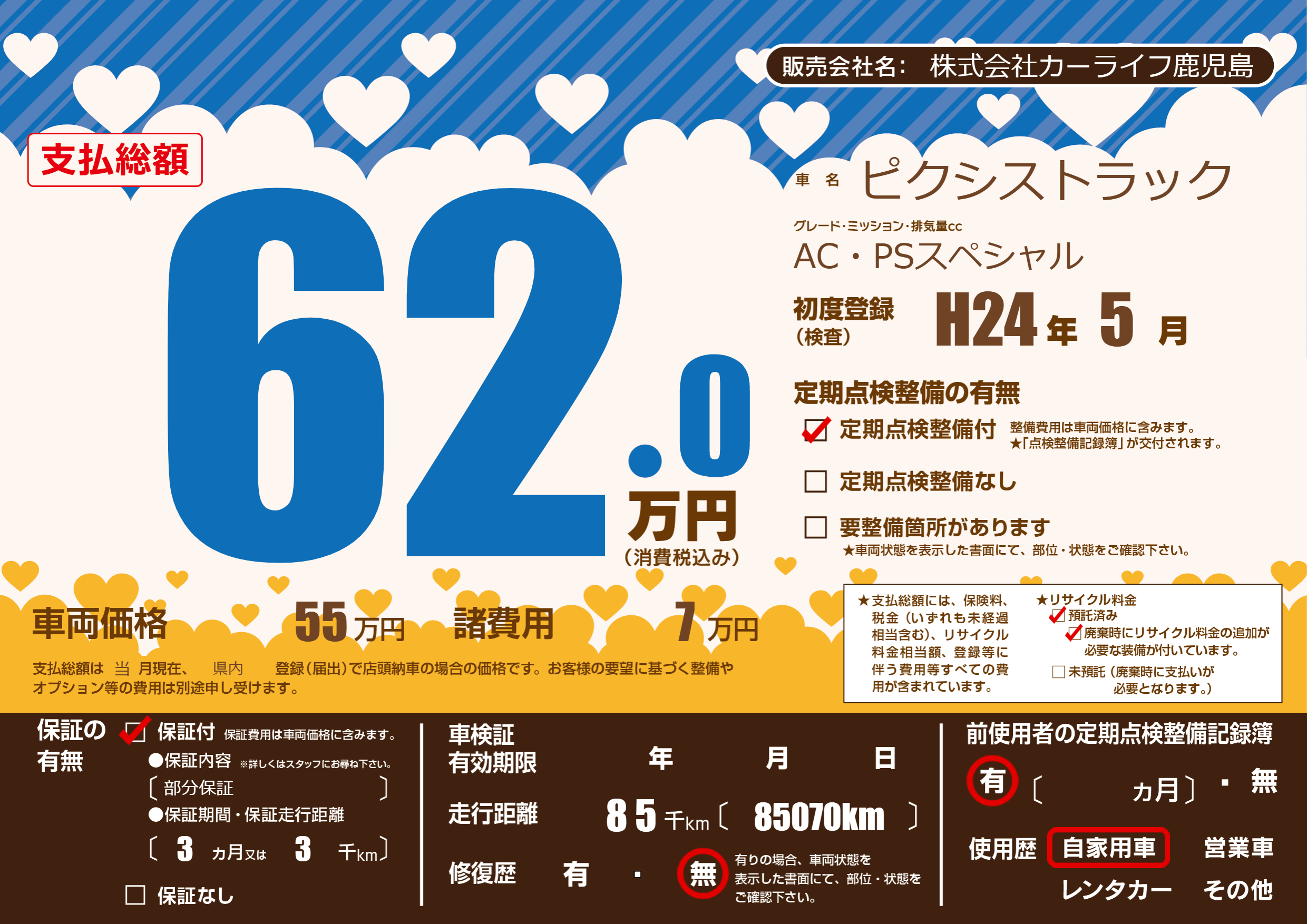 | 定期点検整備 | 定期点検整備あり | ||