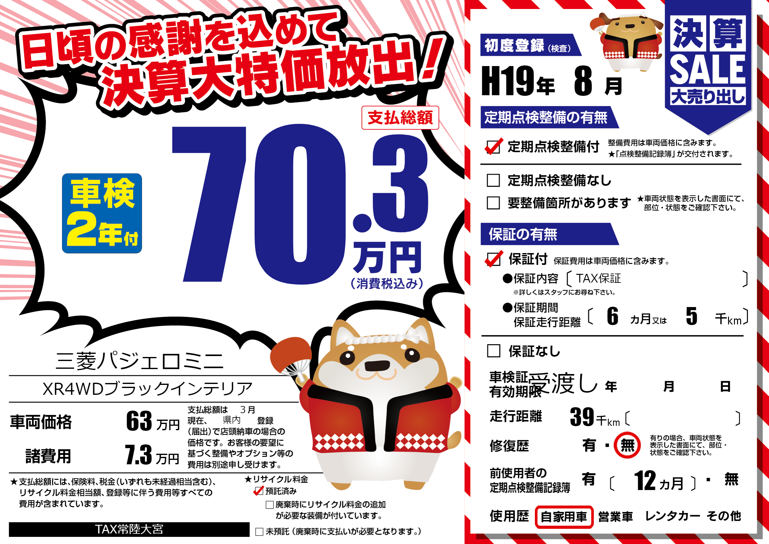 | 車名 | 三菱パジェロミニ | グレード ミッション 排気量 |