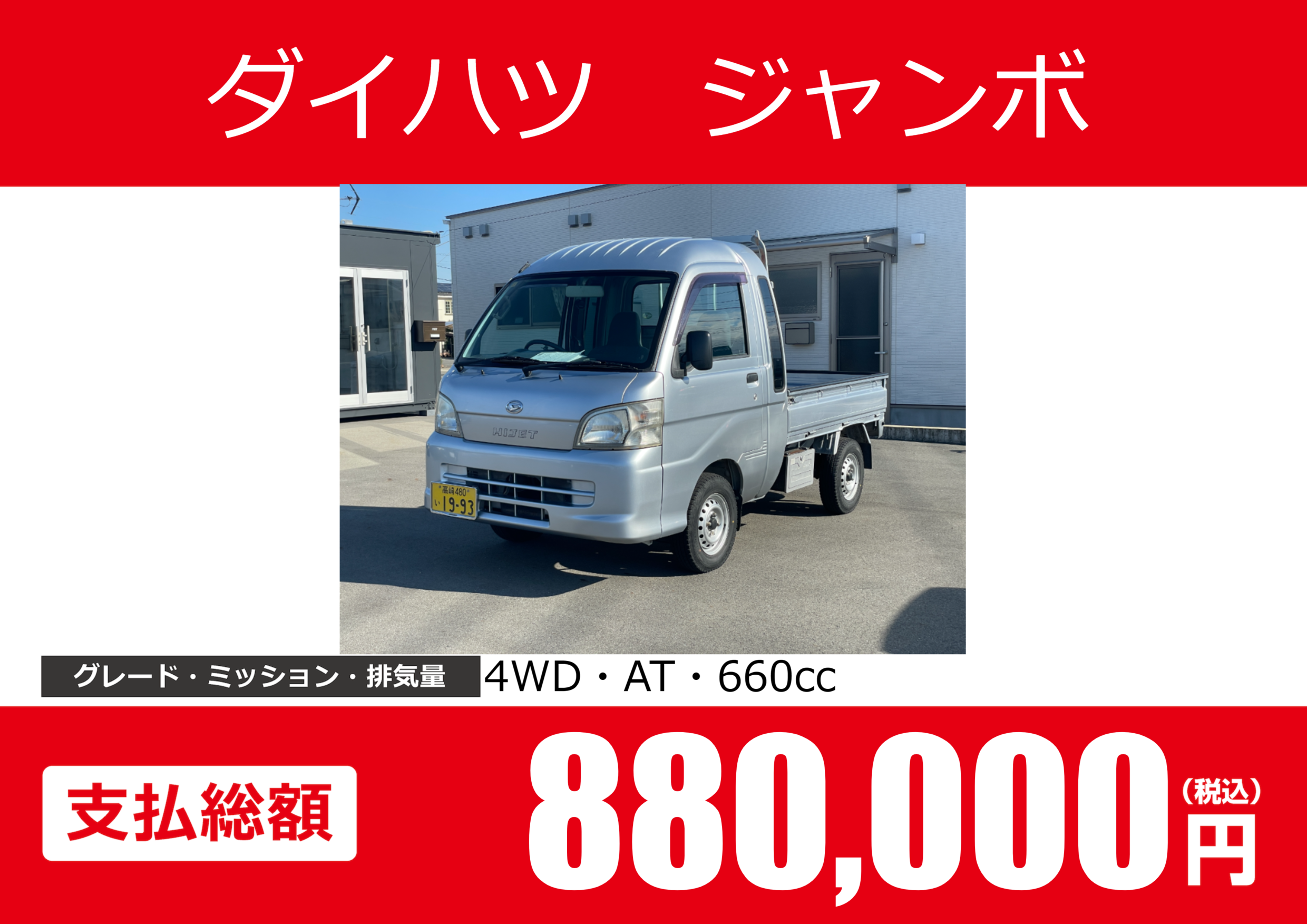 | 車名 | ダイハツ ジャンボ | グレード ミッション 排気量 |