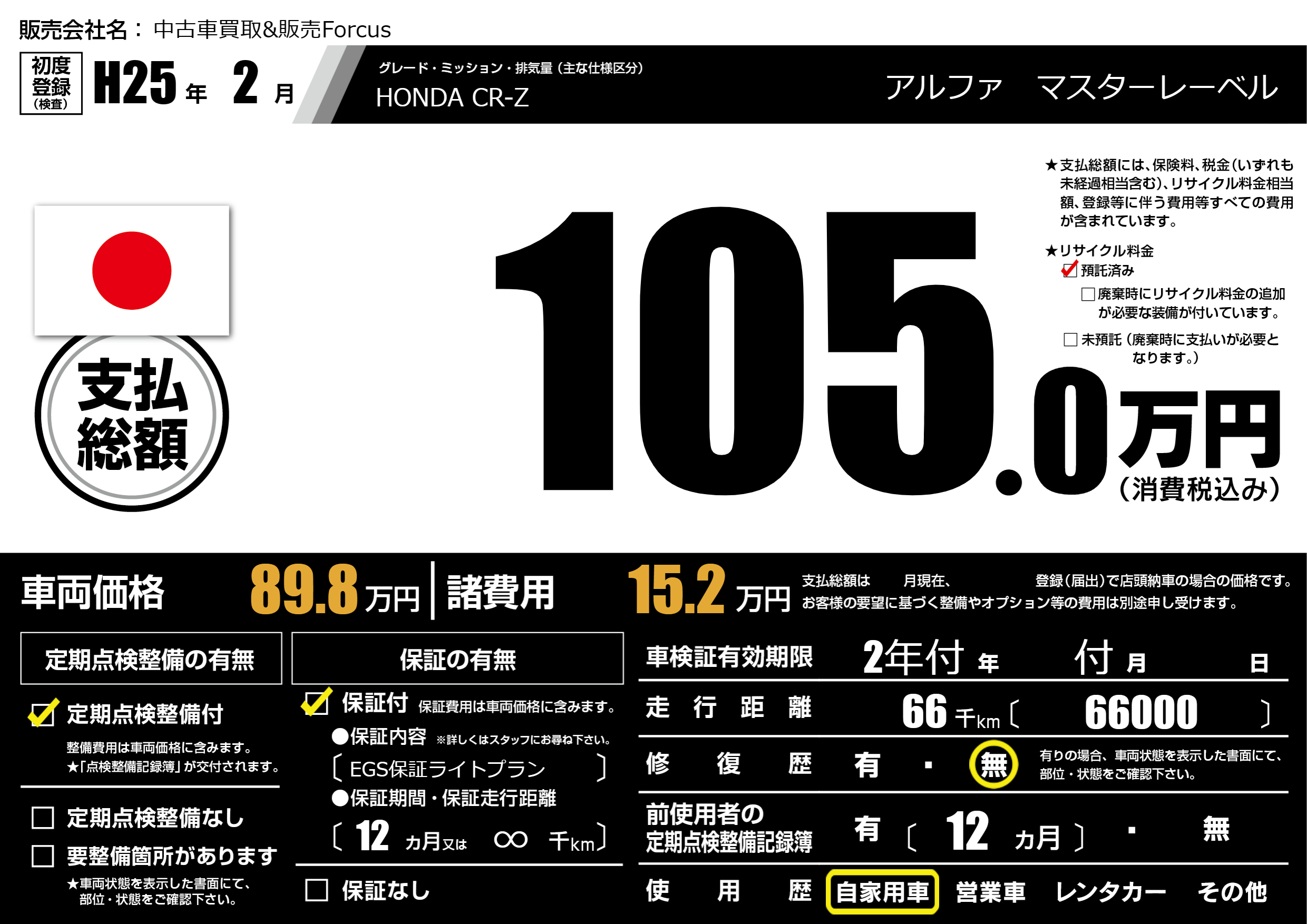 | 定期点検整備 | 定期点検整備あり | ||