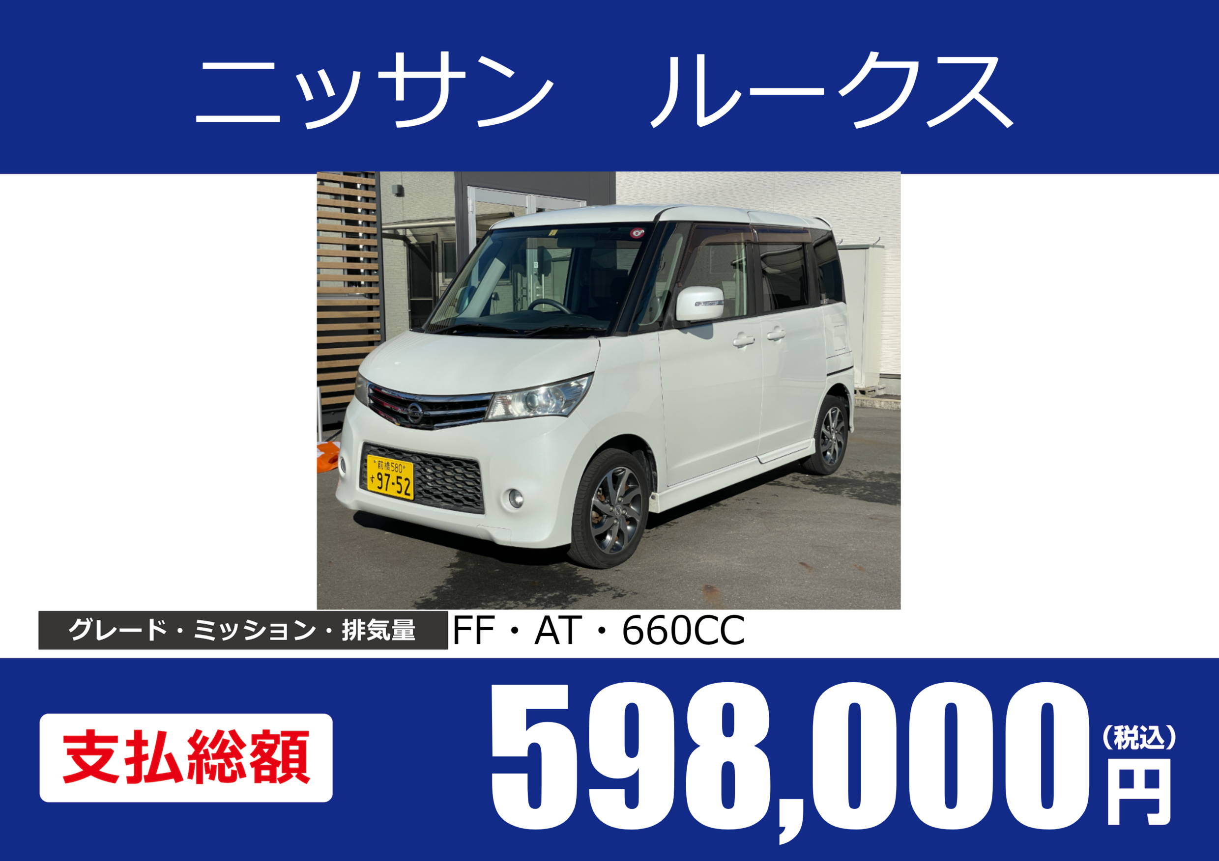 | 車名 | ニッサン ルークス | グレード ミッション 排気量 |