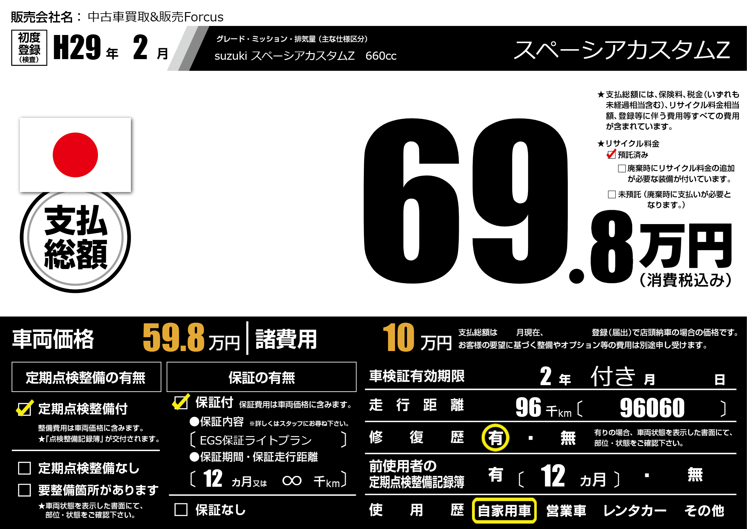| 走行キロ | 9.6万km | 初年度登録 | H29年2月 |