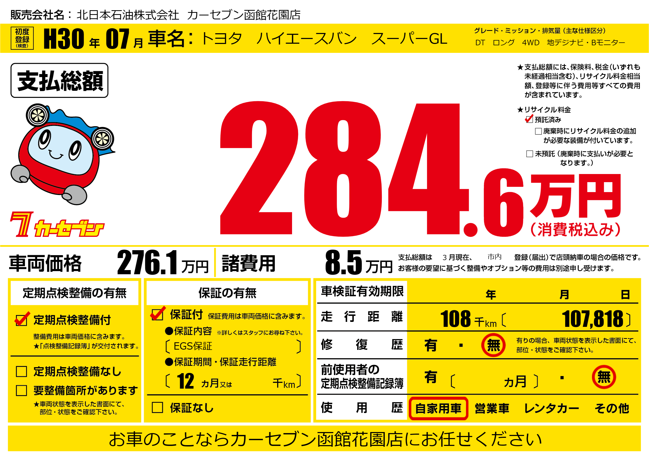 | 走行キロ | 10.8万km | ||