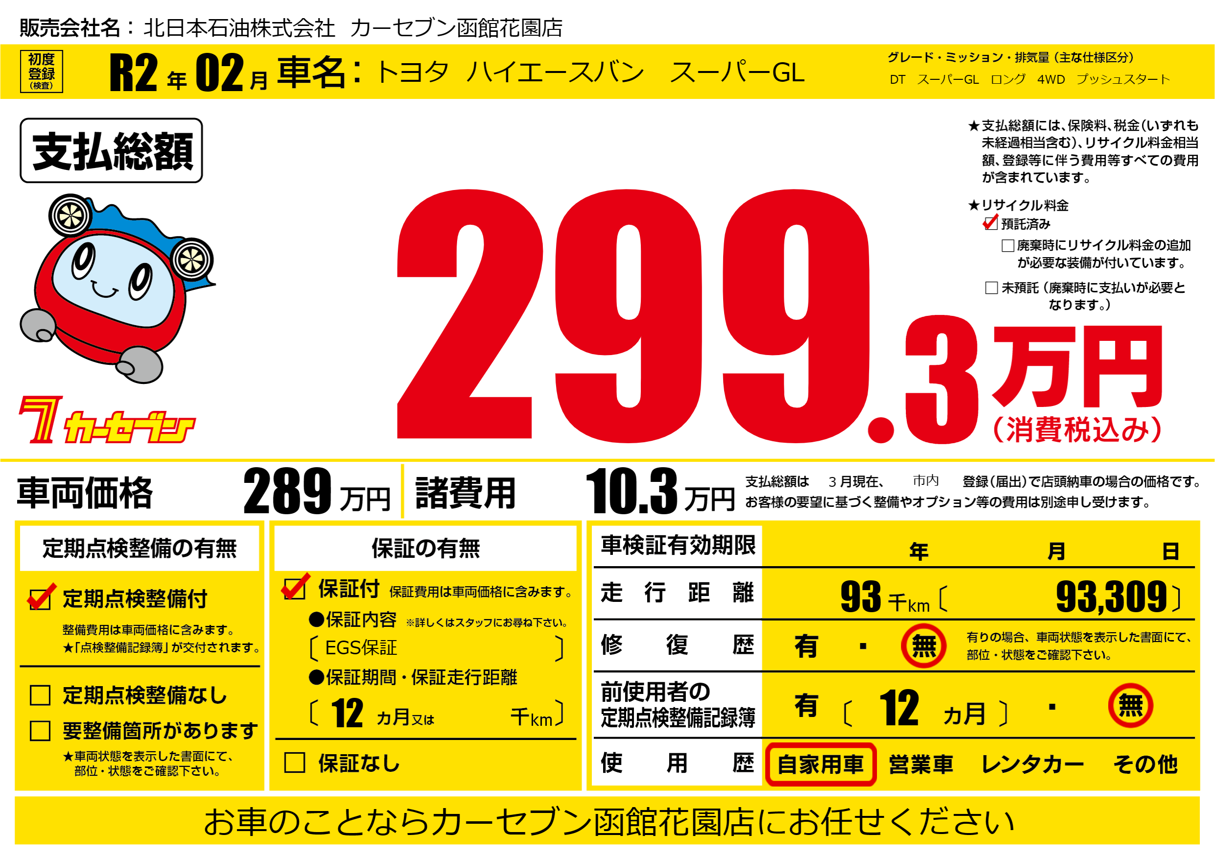| 走行キロ | 9.3万km | ||